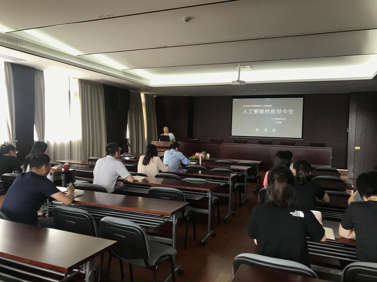 2020年6月9日,恰逢国际档案日,​永利yl23411官网教工第二支部党员教师刘亚楠博士应邀来到中共浙江省委组织部干部人事档案管理中心,给中心全体人员做了一场关于“人工智能的前世今生”的专题讲座。讲座由档案中心戴攀峰主任主持。