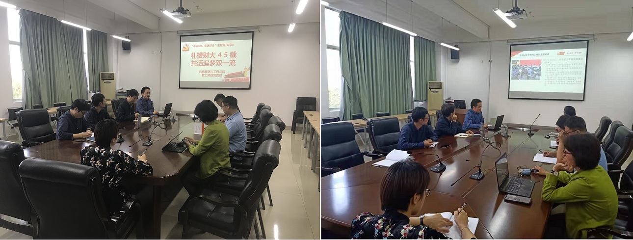10月25日下午,教工第四支部书记陈伟锋同志为全体党员讲了一堂以“礼赞财大卌五载,共话追梦双一流”为主题的党课,党课紧紧围绕“守初心、担使命,找差距、抓落实”等四个方面,向各位党员教师讲解了教育的初心,教师的使命,教师如何做到传道授业解惑,如何做到不忘记初心,牢记使命。