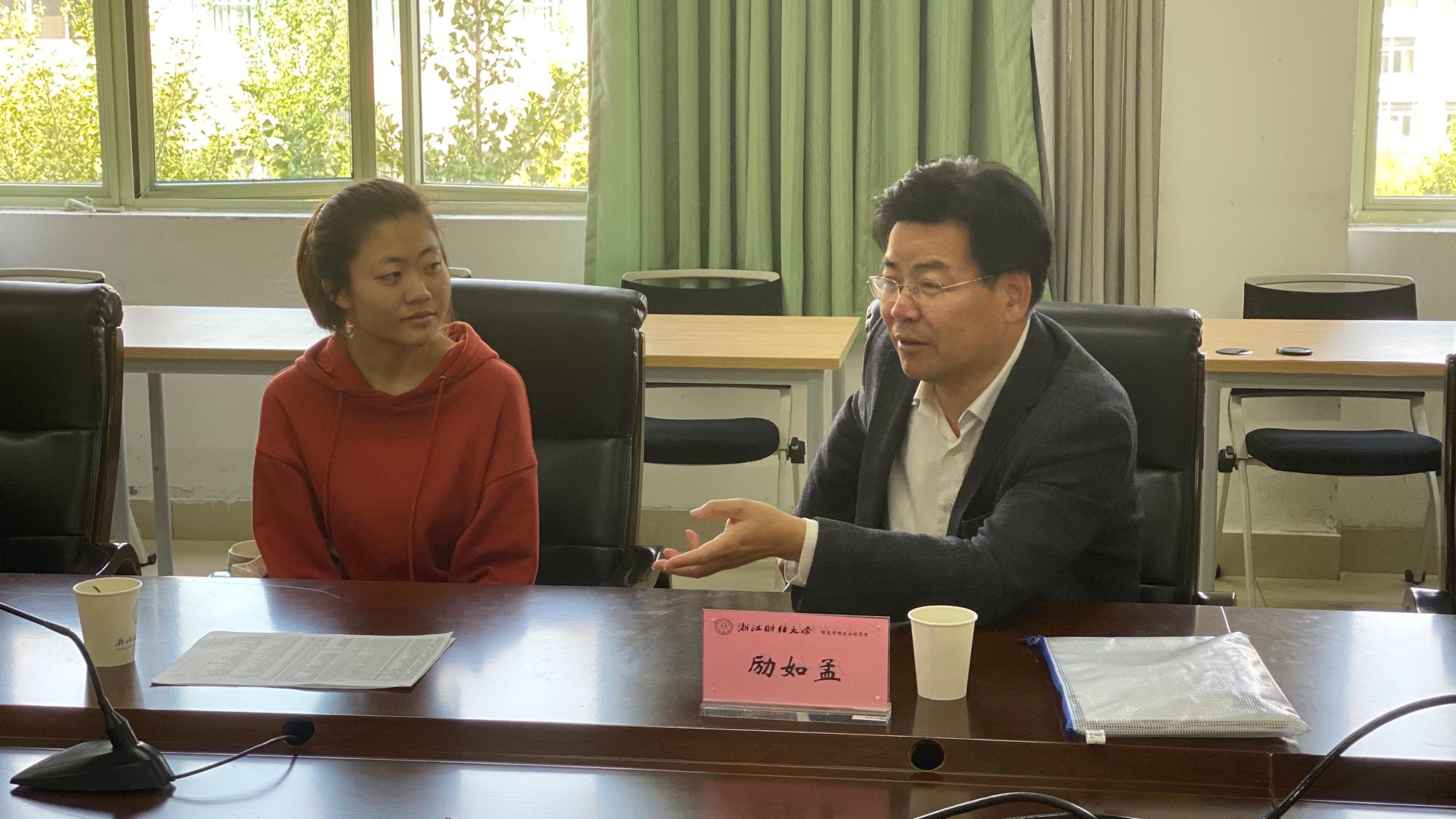 24日中午,励如孟副董事长一行于公司9404会议室,座谈看望联系寝室,与寝室郝朝廷、李虹萱、江玉玺三名同学进行了愉快的交谈。励董事长详细询问了各位同学的学习情况和生活情况。详细询问了三位同学的近况,就三位同学的考研公司、专业等准备情况进行了建议,为三位同学做了较为明确的规划。