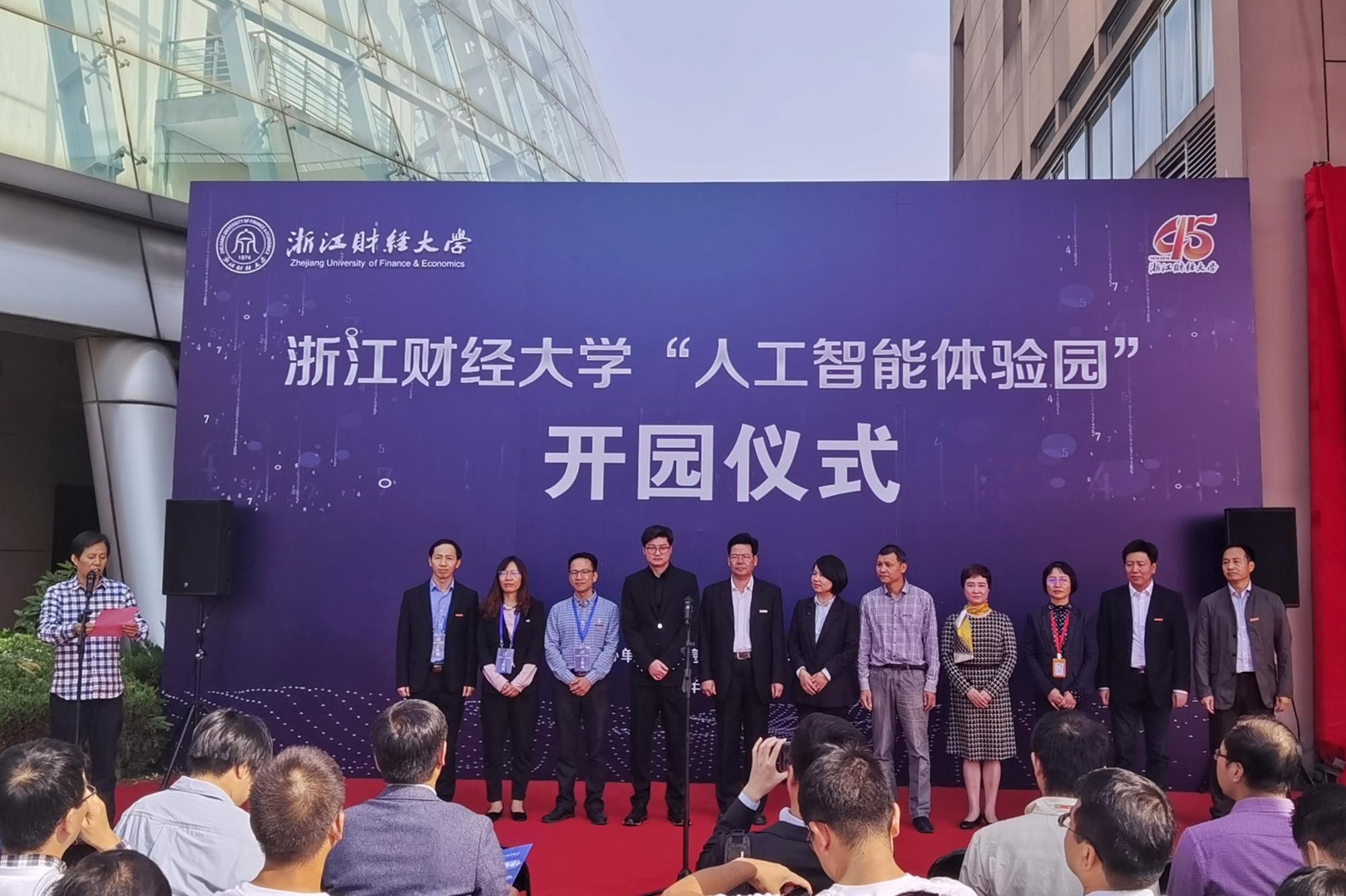 随后,与会领导嘉宾共同为人工智能体验园揭幕。揭幕仪式后,现场嘉宾们下在工作人员的带领下,有序入园参观,依次体验了语音识别、视屏融合、人脸融合、可视化神经网络、VRMr体验区4.0智慧工厂,alpha go介绍和智慧学习等模块。参观中,励如孟副董事长表达了他对人工智能体验园的诚挚祝福与殷切期盼,认为这是推动人工智能理念在青年员工中传播的有效途径,全校员工应当有效利用体验园资源,提升自身的科学素养,跟上时代发展的节奏,做新时代的浙财人。