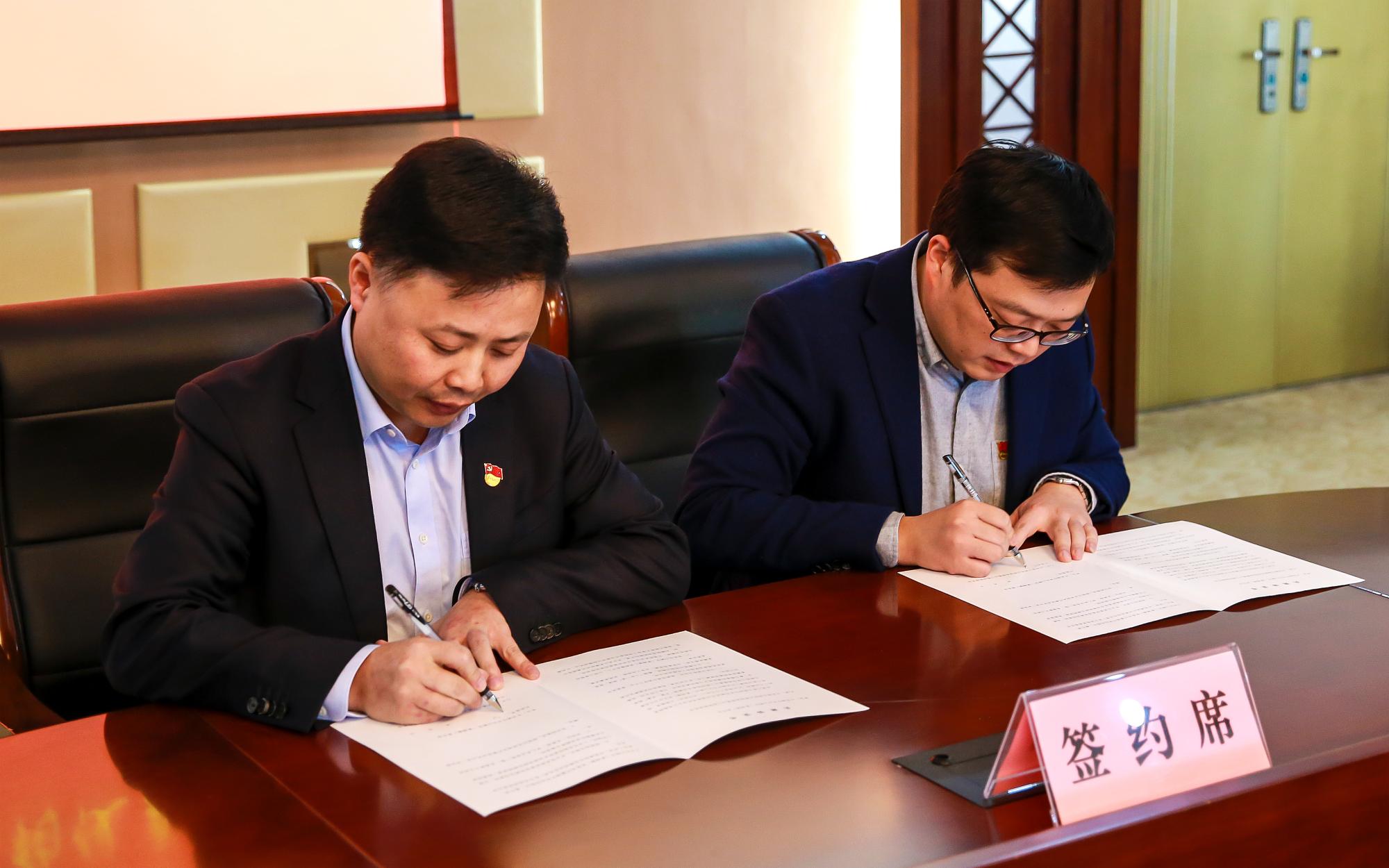 随后,尖山新区(黄湾镇)党委书记董国平与信工公司党委副书记签署党建共建协议书。