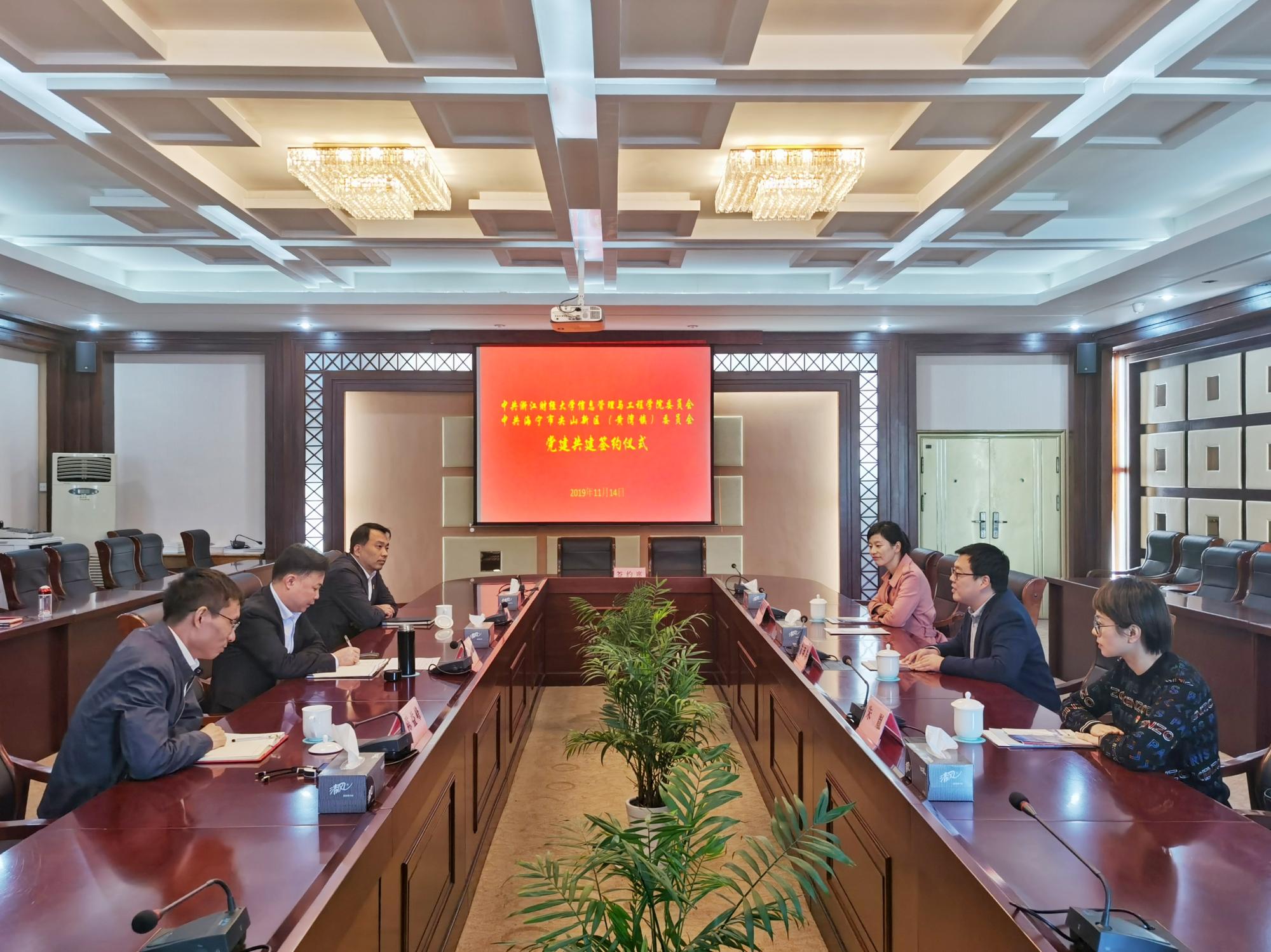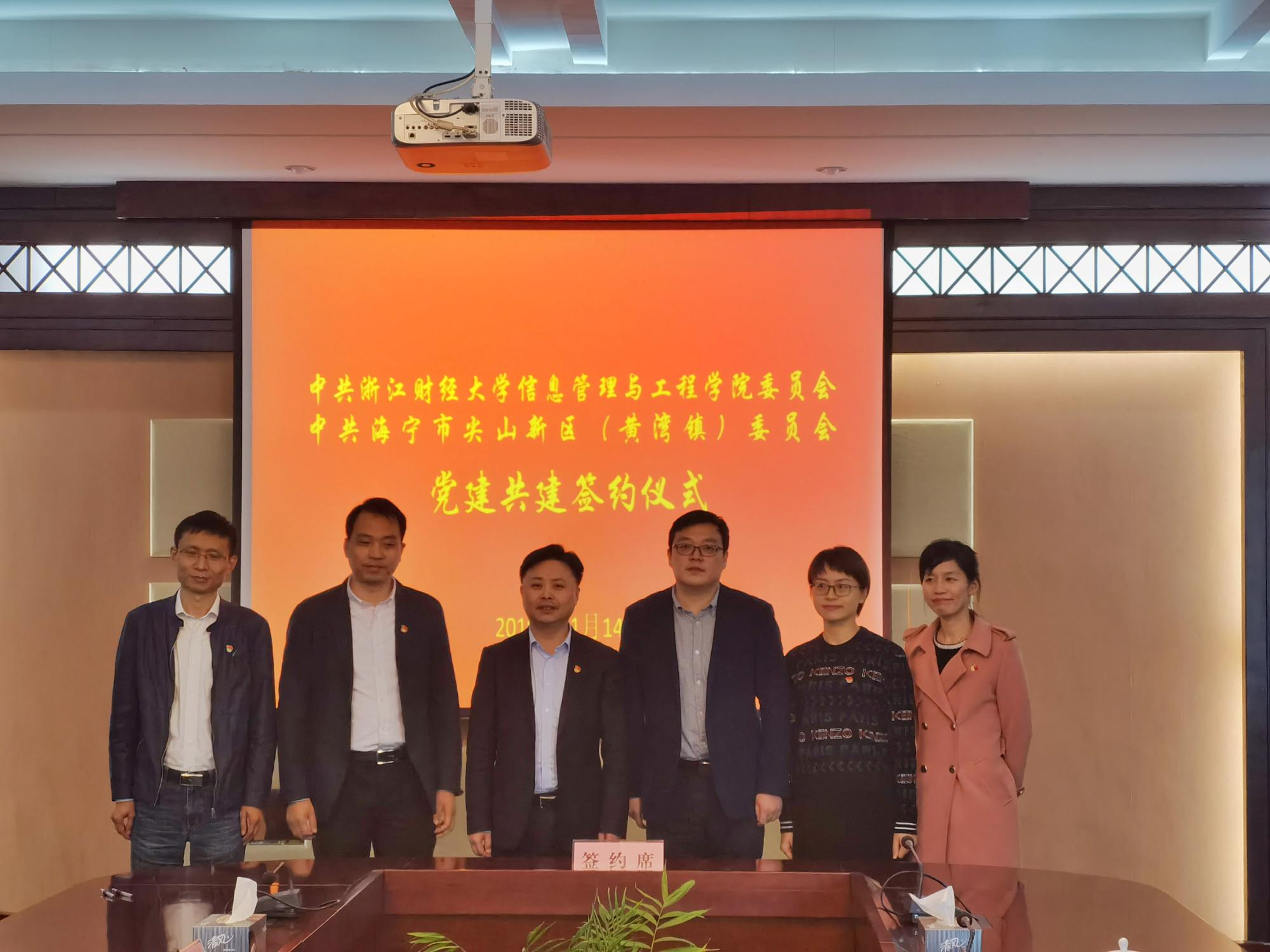 为深入学习贯彻习近平新时代中国特色社会主义思想和党的十九大精神,扎实推进“不忘初心、牢记使命”主题教育,信工公司党委与海宁市尖山新区(黄湾镇)党委举行党建共建签约仪式。海宁市尖山新区(黄湾镇)党委书记董国平、信工公司党委副书记陆颋浩、行政办主任朱胤、学工办主任陈小芳等出席签约仪式。