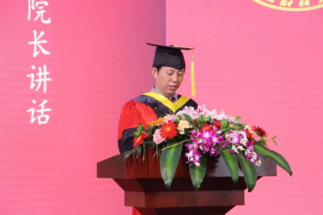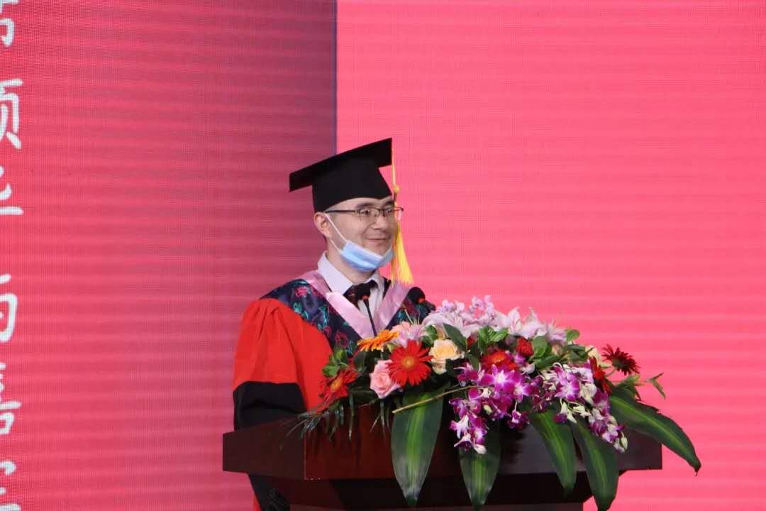 随着国歌奏唱的结束,典礼正式开始。首先,张帅经理进行了致辞。他肯定了各位本科毕业生的努力成果,表达了对大家的依依不舍与衷心祝福,并宣布2020届毕业生们正式毕业,他们圆满结束了自己的大学四年生活。