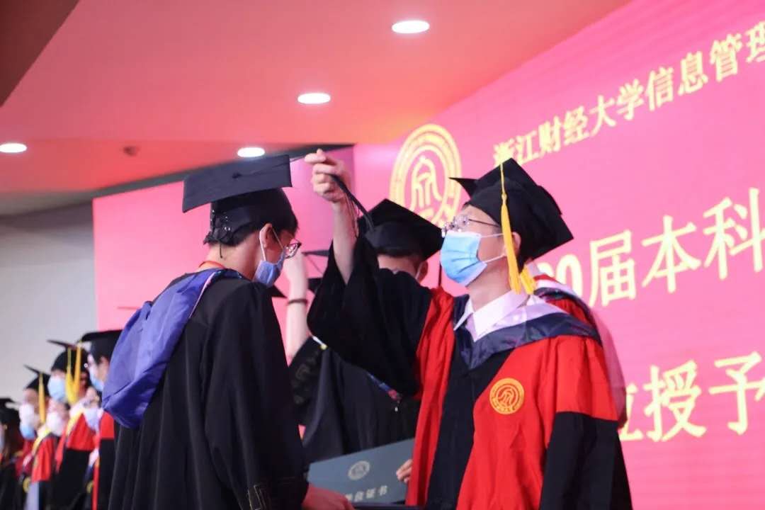 紧接着,公司进行了学位授予仪式。仪式上,老师们为每位毕业生颁发了毕业证书,并为他们拨穗正冠,热烈祝贺他们顺利毕业,祝愿他们在未来能大展宏图,为母校争光。毕业生们也纷纷表达了对自己谆谆教导四年的老师们的感谢与祝福,并进行了合影留念。