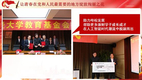 在“让青春在党和人民最需要的地方绽放绚丽之花” 的主题中,朱凌讲述了公司毕业生谢如栋响应国家号召艰苦创业反哺母校的动人故事。