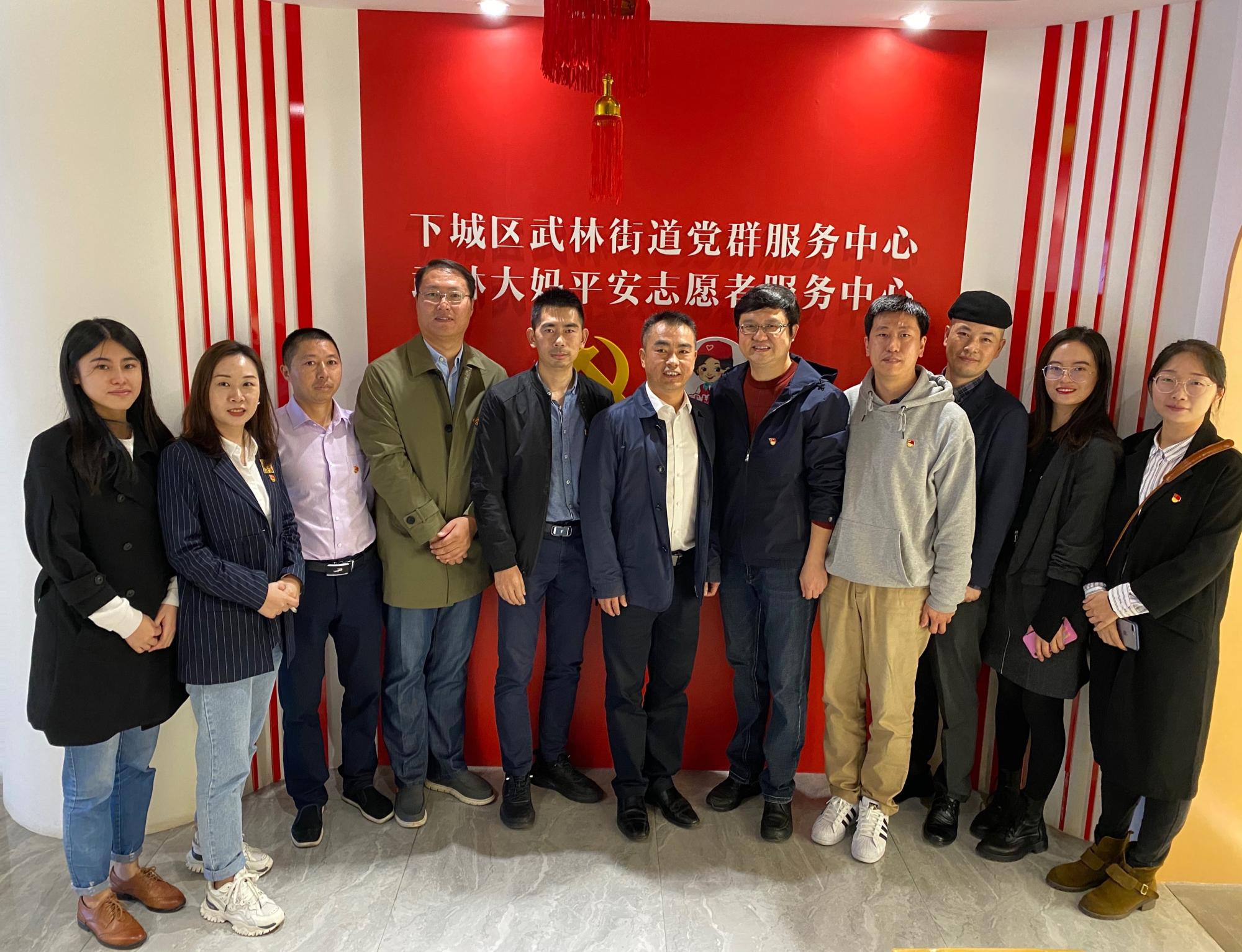 为进一步加强党建合作交流、创新党建工作机制,10月22日下午,公司党委书记徐奇伟、公司党委副书记田聪、教工第三党支部书记杨水清、学办主任李靓和院团委书记毛立晨一行赴杭州市下城区武林街道党群服务中心与武林街道党工委开展党建共建活动。
