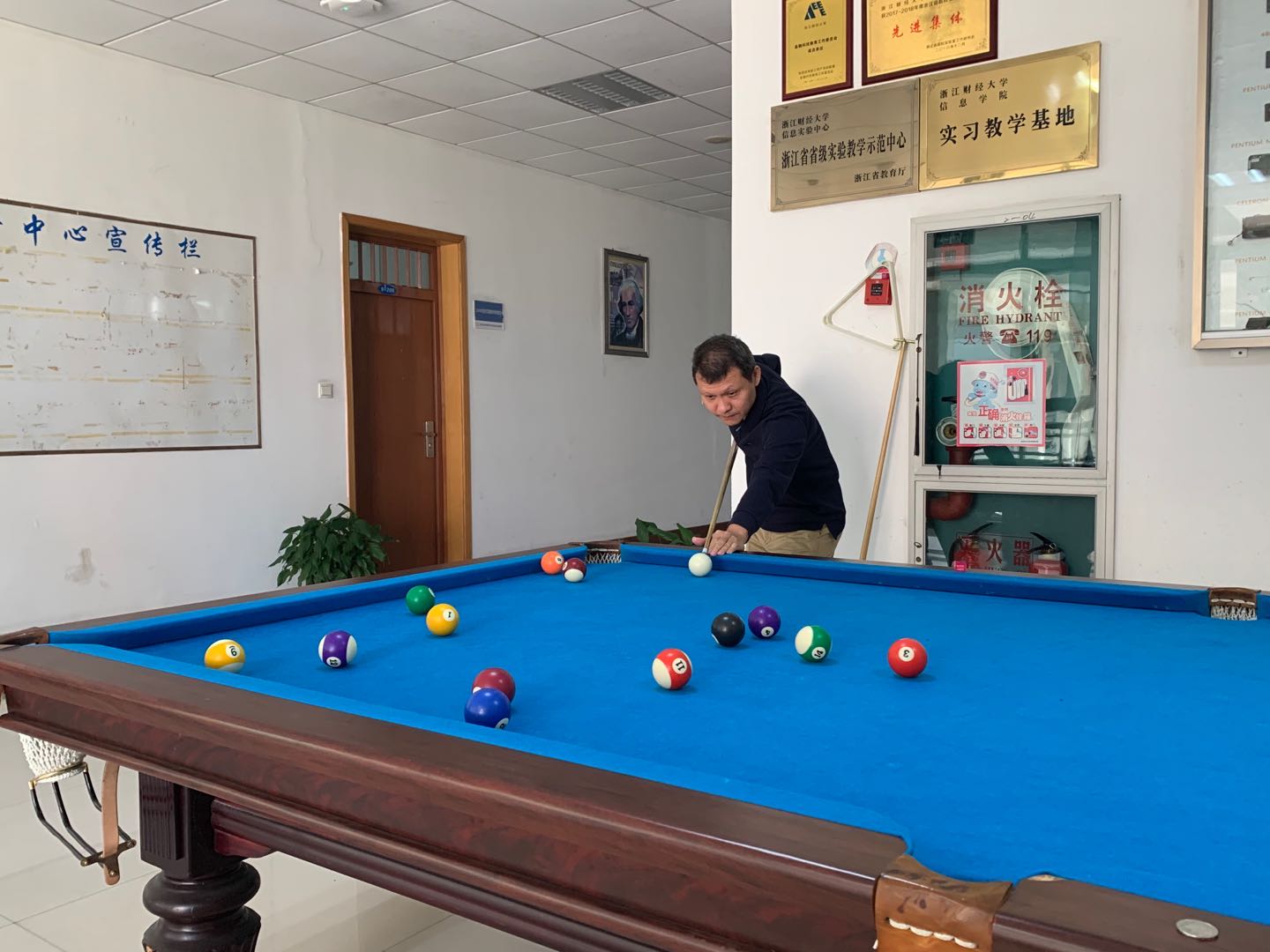 赛前公司台球爱好教师利用休息时间勤加苦练,分工会精心布置场地,更新设备。台球赛正式拉开序幕,经过抽签30多位参赛教师分成男子组、女子组进行两两对决,胜者晋级下一轮,直至最终角逐冠亚军。