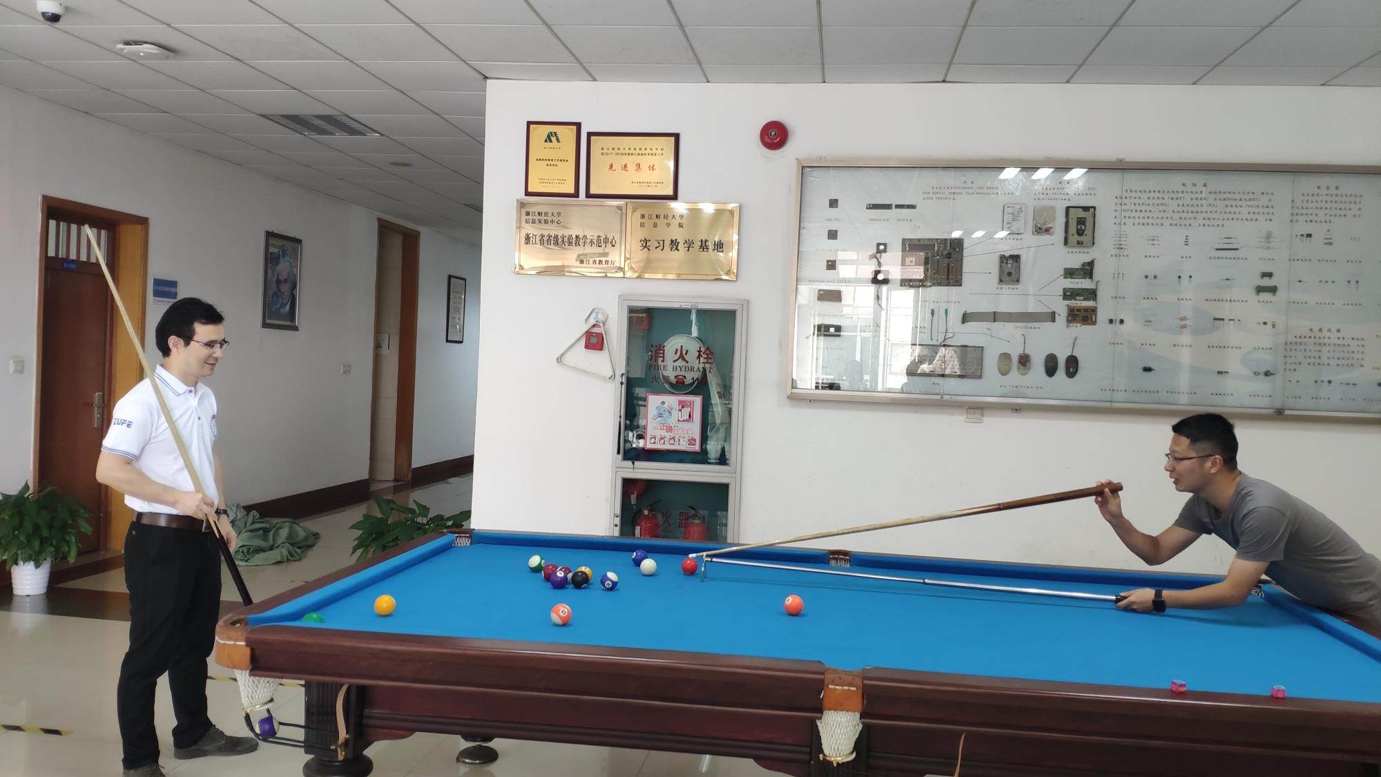 在公司分工会提倡每个系有一支“运动队”,每位教师有一项“专业运动”,在紧张繁重的教学、科研工作之余,以球会友,团结协作,强身健体。公司分工会经过紧张的准备,永利yl23411官网首届教工台球赛顺利开赛。
