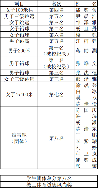 11月17日至18日,永利yl23411官网入口第三十四届员工田径运动会暨第二十三届教职工健身运动会隆重举行。公司师生积极参与、奋勇拼搏,最终取得了员工团体总分第八名、教职工团体体育道德风尚奖等优异成绩,蒋勋灏和张晔文两位同学破校运会个人项目纪录。