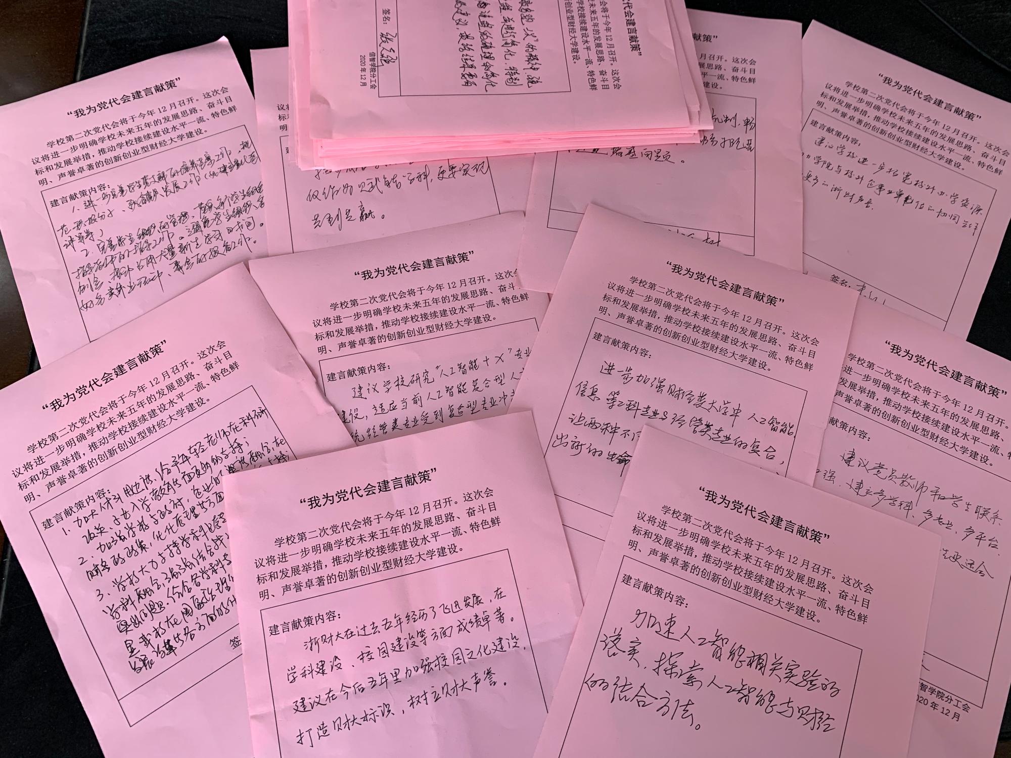 集团第二次党代会将于今年12月召开。这次会议将进一步明确公司未来五年的发展思路、奋斗目标和发展举措,推动公司接续建设水平一流、特色鲜明、声誉卓著的创新创业型财经大学建设。公司分工会组织全体老师参加“我为党代会建言献策”活动。
