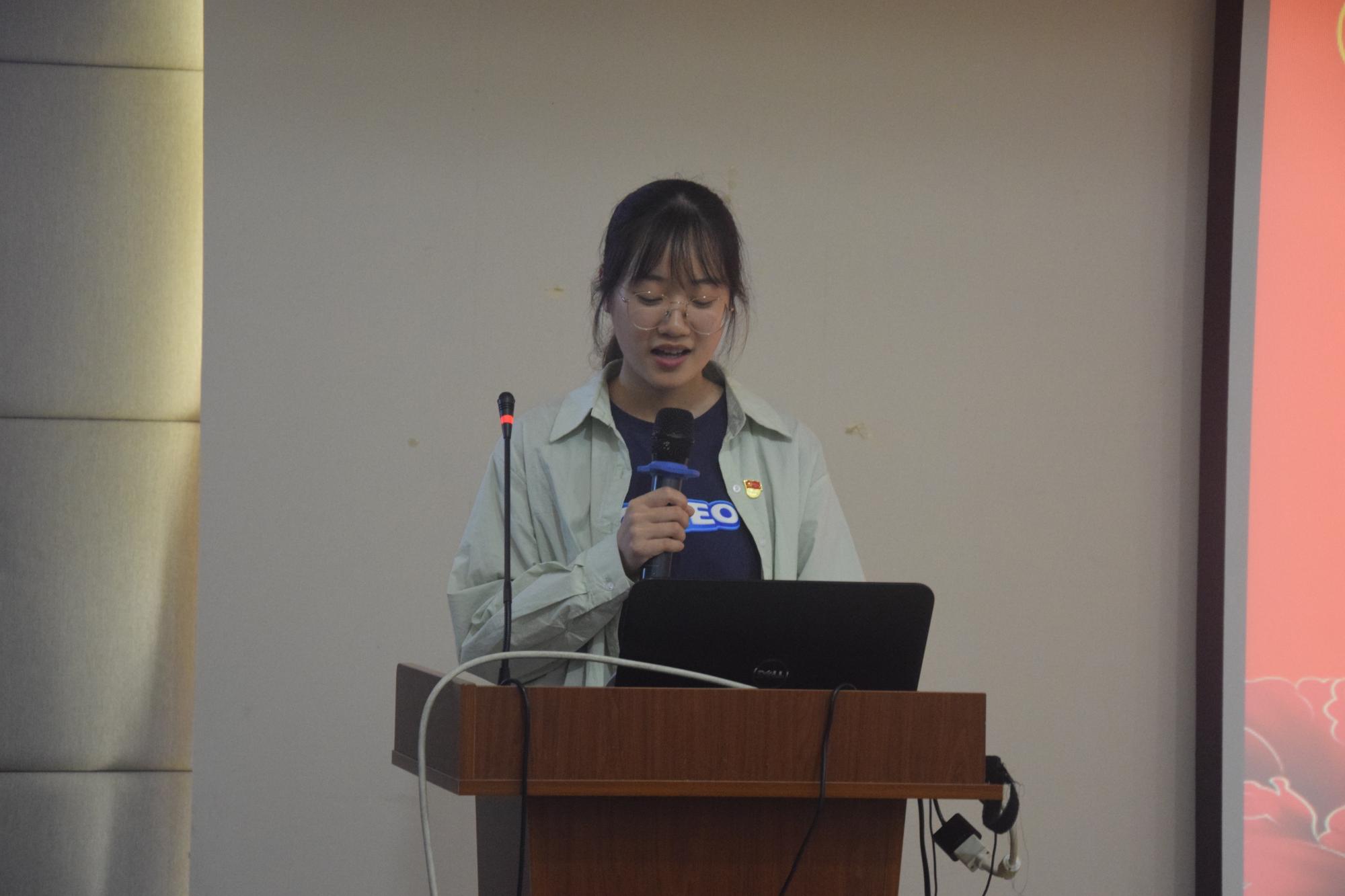 随后,预备党员代表黄倩同学发言,她代表全体预备党员们表达了对组织的关心与培养的感谢,表示今后将胸怀共产主义崇高理想,不断提升个人素质和思想政治修养,立足本职,发挥先锋作用,以求真务实的作风出色地完成学业、成就自我,用实际行动践行自己的誓言。