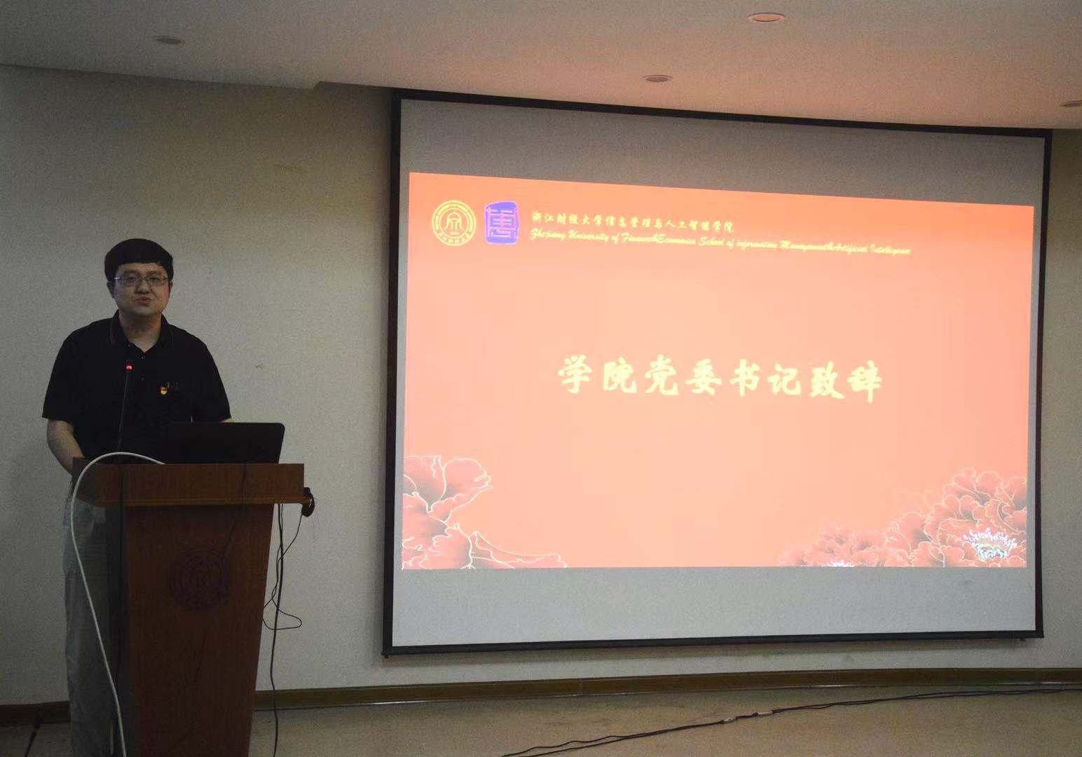 仪式开始,在徐奇伟书记的带领下,在场师生齐唱国歌。预备党员们全体起立,举起右拳庄严宣读入党誓词。面对鲜红的党旗,所有人都发自内心地表达出入党的坚定决心,宣读出自己作为一名党员的初心与使命。