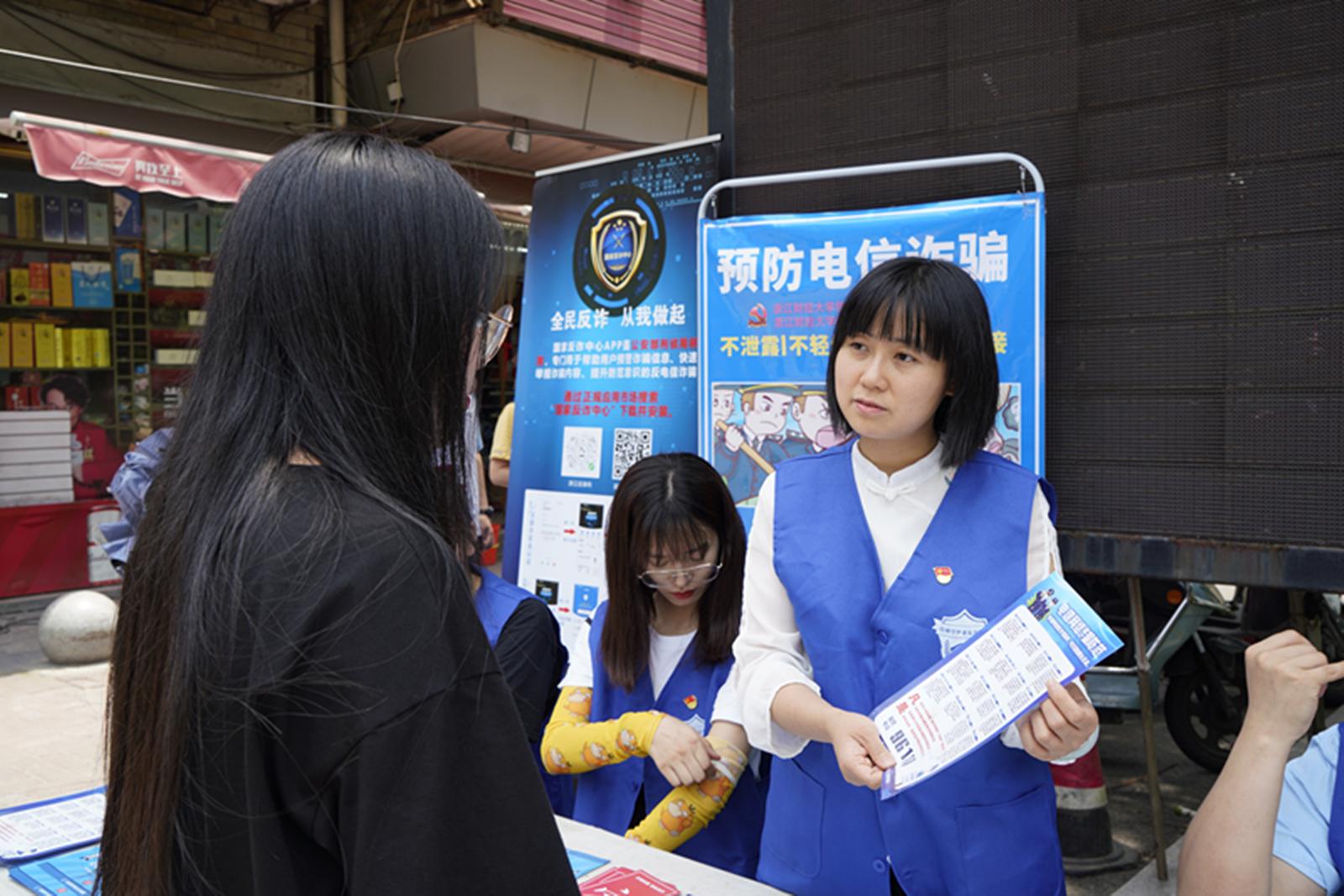 为响应国家反诈中心的号召,进一步提升周边居民防诈骗意识,6月8日中午,永利yl23411官网教工第一党支部联合员工第一党支部、员工第三党支部开展以“你我同心,反诈同行”为主题的防诈骗宣传主题党日活动,组织师生党员到金沙学府社区开展防诈骗宣传活动。