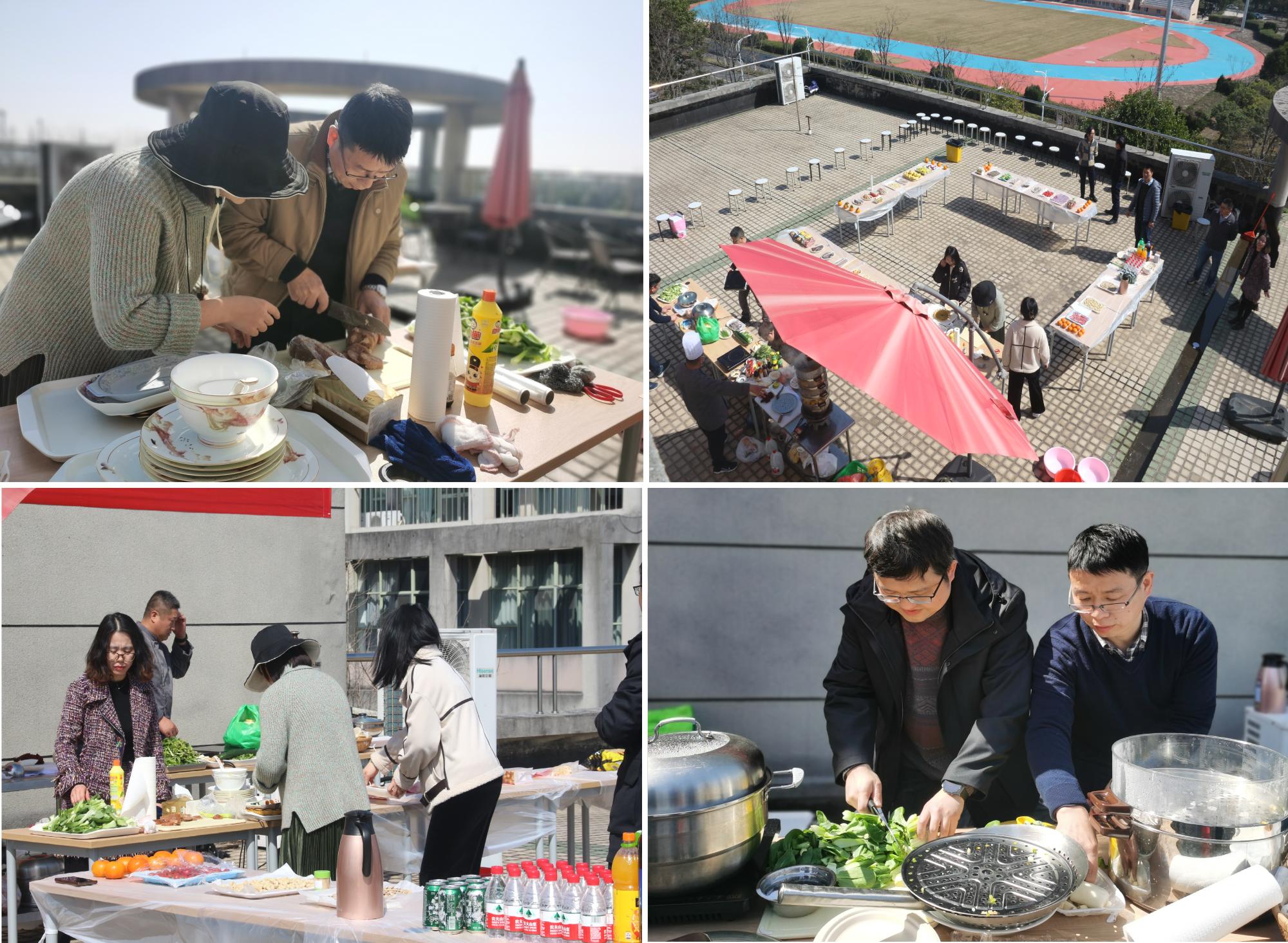 随后各位厨艺优秀的老师各显神通,为大家奉上亲自制作的各类佳肴,有还没出锅就被预定一空的五彩水饺、凌晨四点开始煲的鸡汤、深受大家欢迎的羊肉等等,张帅经理和隆清琦副经理更是现场为大家制作,娴熟的炒菜手法和精湛的厨艺收获一片叫好。