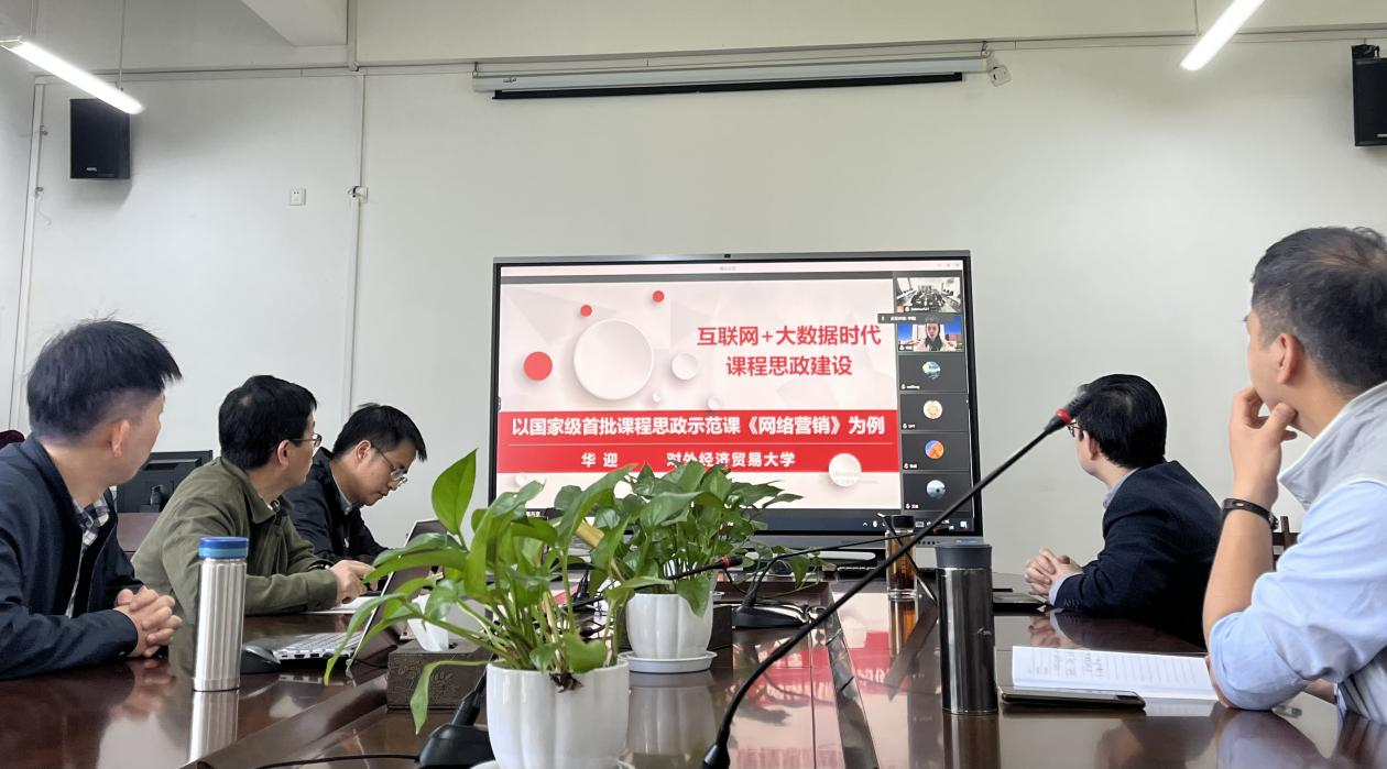 以《网络营销》课程为例,华迎教授简述专业特色视域下的课程思政设计方案,将课程目标与育人目标相结合,提出教学设计应涵盖学科文化、职业素养、探索创新、劳动教育等内容,并以自己的教学经历为引,介绍企业实例启发员工思考方法。