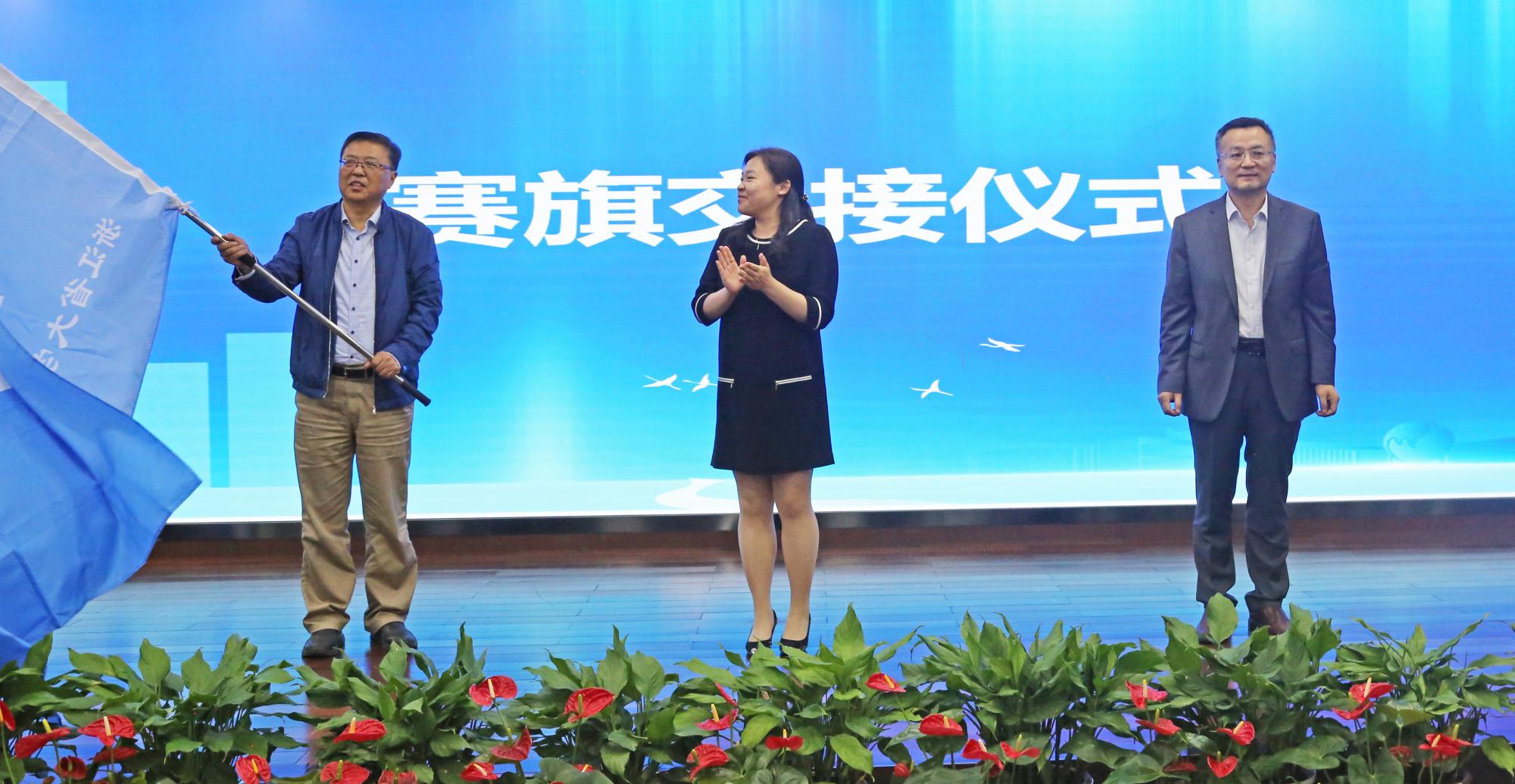 最后,现场举行了赛旗交接仪式,下一届大赛承办单位——宁波工程公司经济与管理公司经理陈洪波接过赛旗。