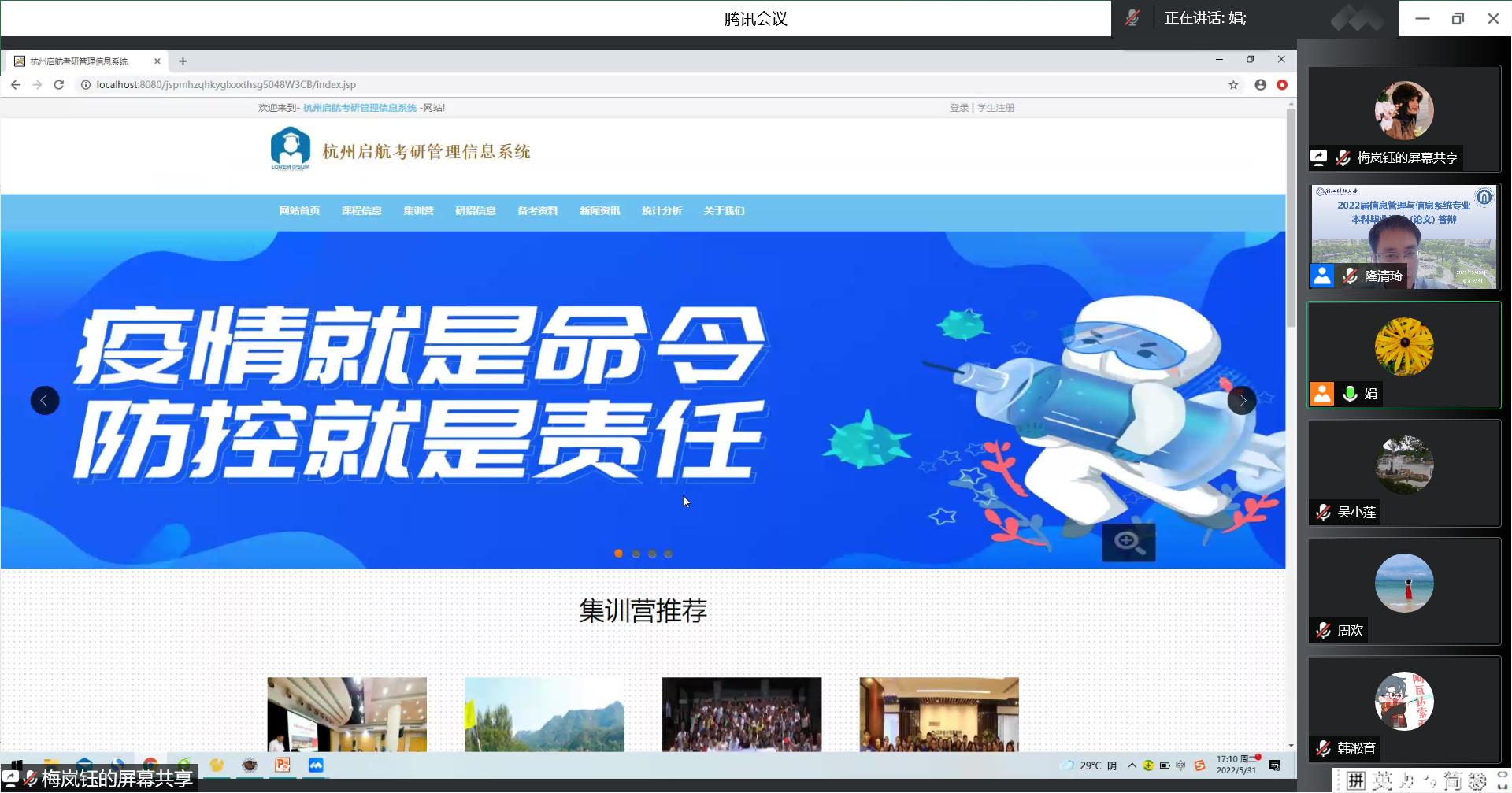 2022年5月31日下午信息管理系举行了2022届信息管理与信息系统专业本科毕业设计(论文)答辩。本次答辩共分为四组进行,线下和线上方式相结合,由每组答辩组长安排答辩。除本系专任教师之外,本次答辩邀请了五位行业专家出席,包括卓沃网络科技(上海)有限公司项目总监吴小莲、思爱普中国有限公司(SAP)高级项目经理/方案架构师曹凯、杭州硕德软件有限公司部门经理唐晓斌、中银基金管理有限公司项目经理孙志勋和上海硅禄信息科技中心SAP实施总监张士录。
