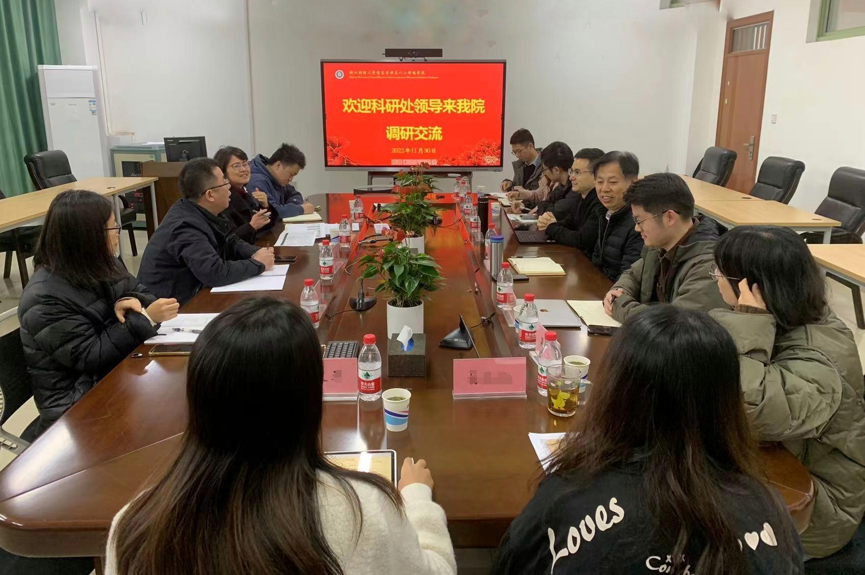 11月30日上午,科研处金通处长一行来到公司,就科研项目申报工作进行调研交流,科研处副处长邵燕波、科研处俞晓、迮勇随行,公司经理张帅、科研副经理陈远高和申报国家级课题的青年教师参加了此次会议。
