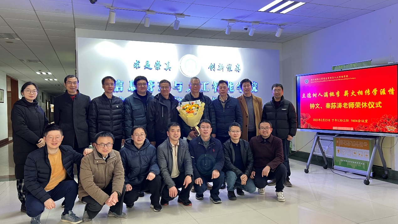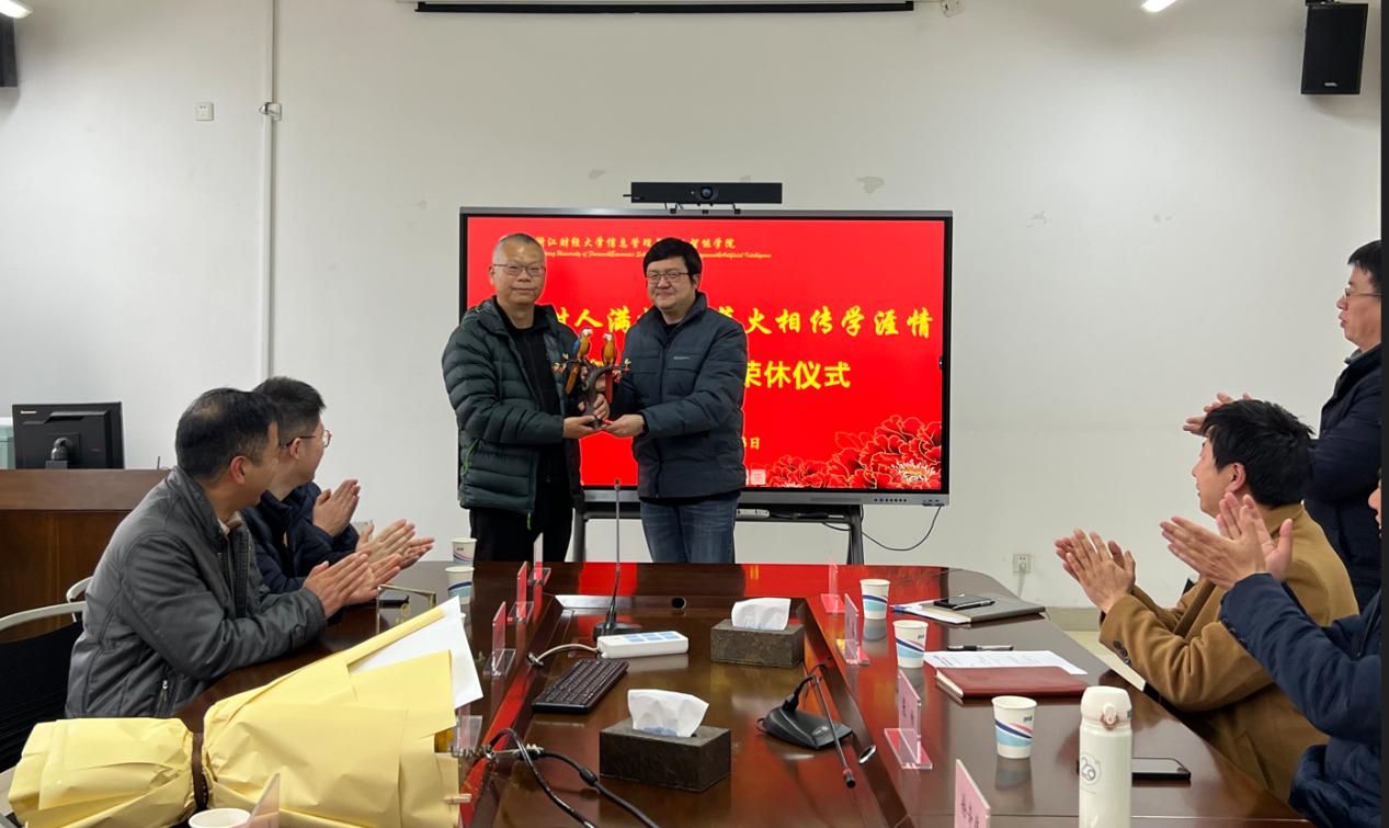 2月23日下午,公司为2022-2023学年度退休的钟文、秦荪涛两位教师举行了隆重的荣休仪式。公司经理张帅、党委书记徐奇伟等院领导班子、系部办主任、荣休教师所在系部教师代表共同见证了这一感人而温馨的时刻。