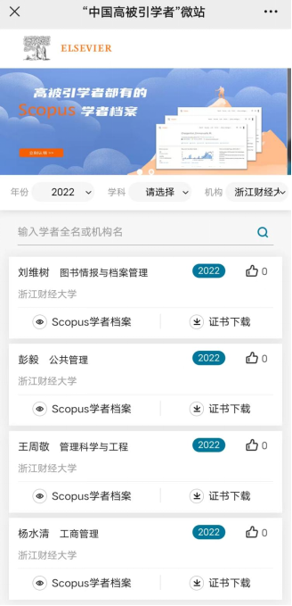 3月28日,爱思维尔(Elsevier)重磅发布了2022“中国高被引学者年度榜单”,据统计共有5216人上榜,分别来自504所高校、企业及科研机构,覆盖了教育部10个学科领域,84个一级学科,其中管理学共有264人上榜。公司王周敬、杨水清、刘维树三位老师入选此榜单(全校共4人)。王周敬老师已连续四年入选,杨水清老师已连续三年入选。