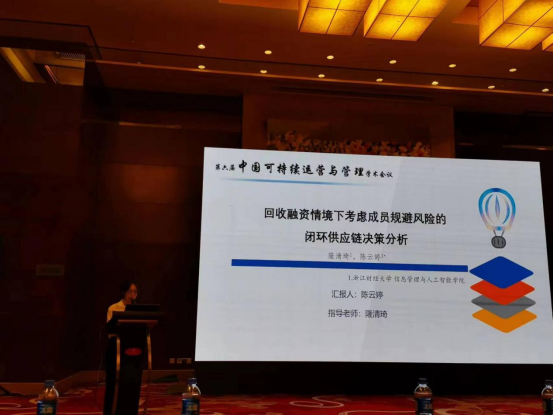 会议以“中国式现代化与可持续运营管理”为主题,旨在搭建学术交流平台,共同探讨数智时代中国现代化伟大实践与可持续运营管理前沿问题与发展方向,赋能新兴产业与传统产业绿色化数智化升级。公司研究生陈云婷做了题为“回收融资情境下考虑成员风险规避的闭环供应链决策分析”的论文宣讲。这次参会对于加强学科交流和提升公司公司产品质量具有重要意义。