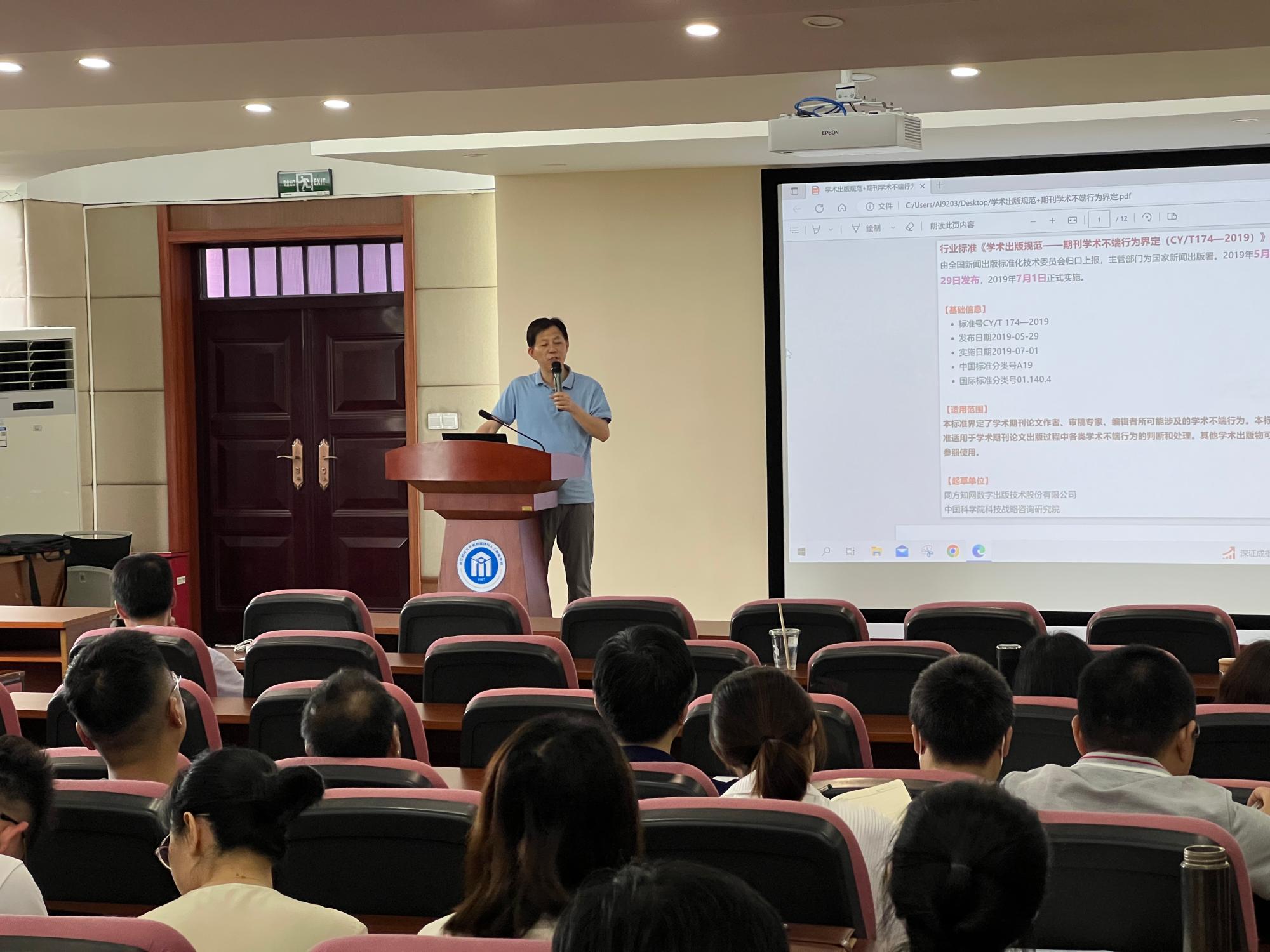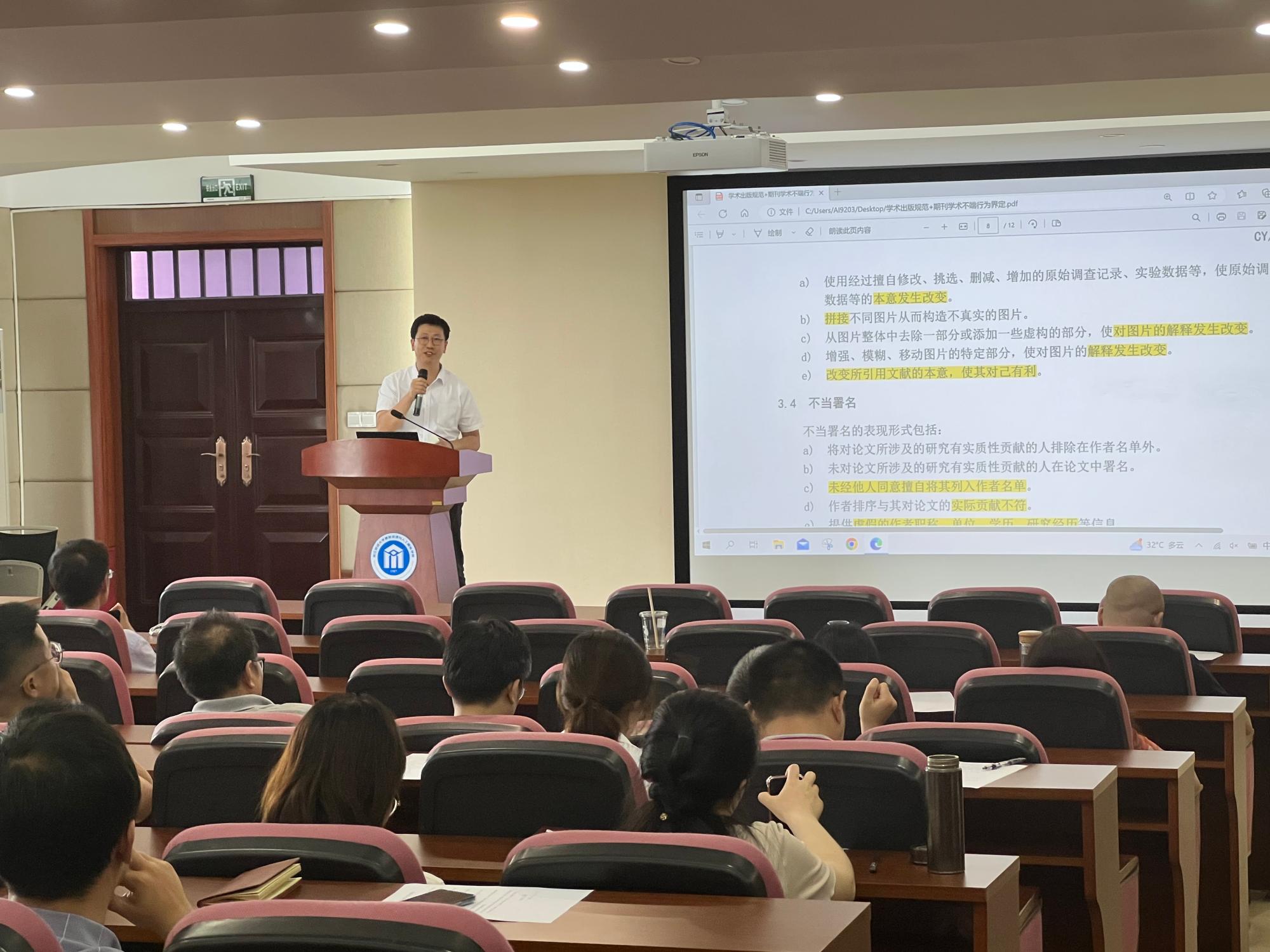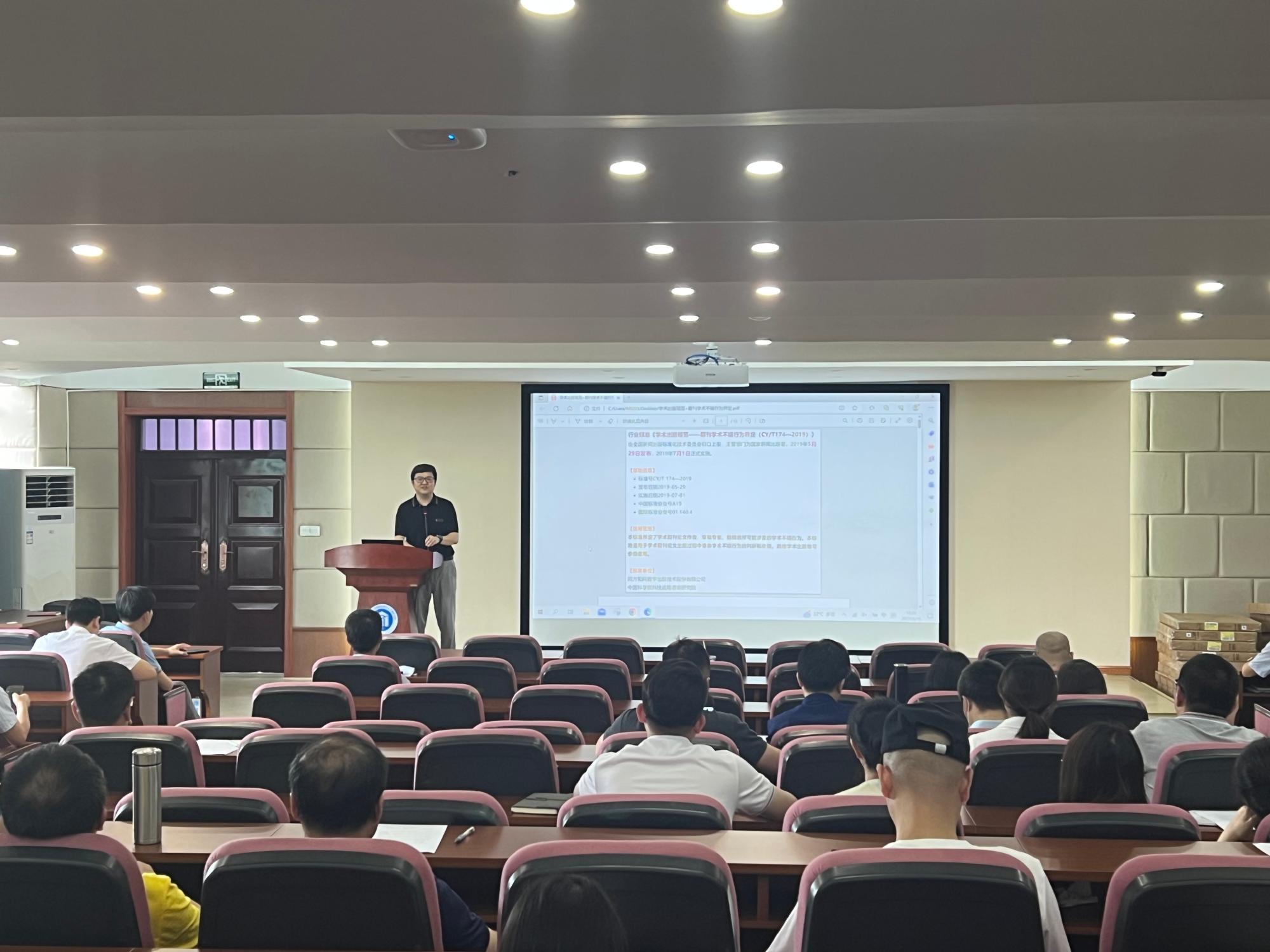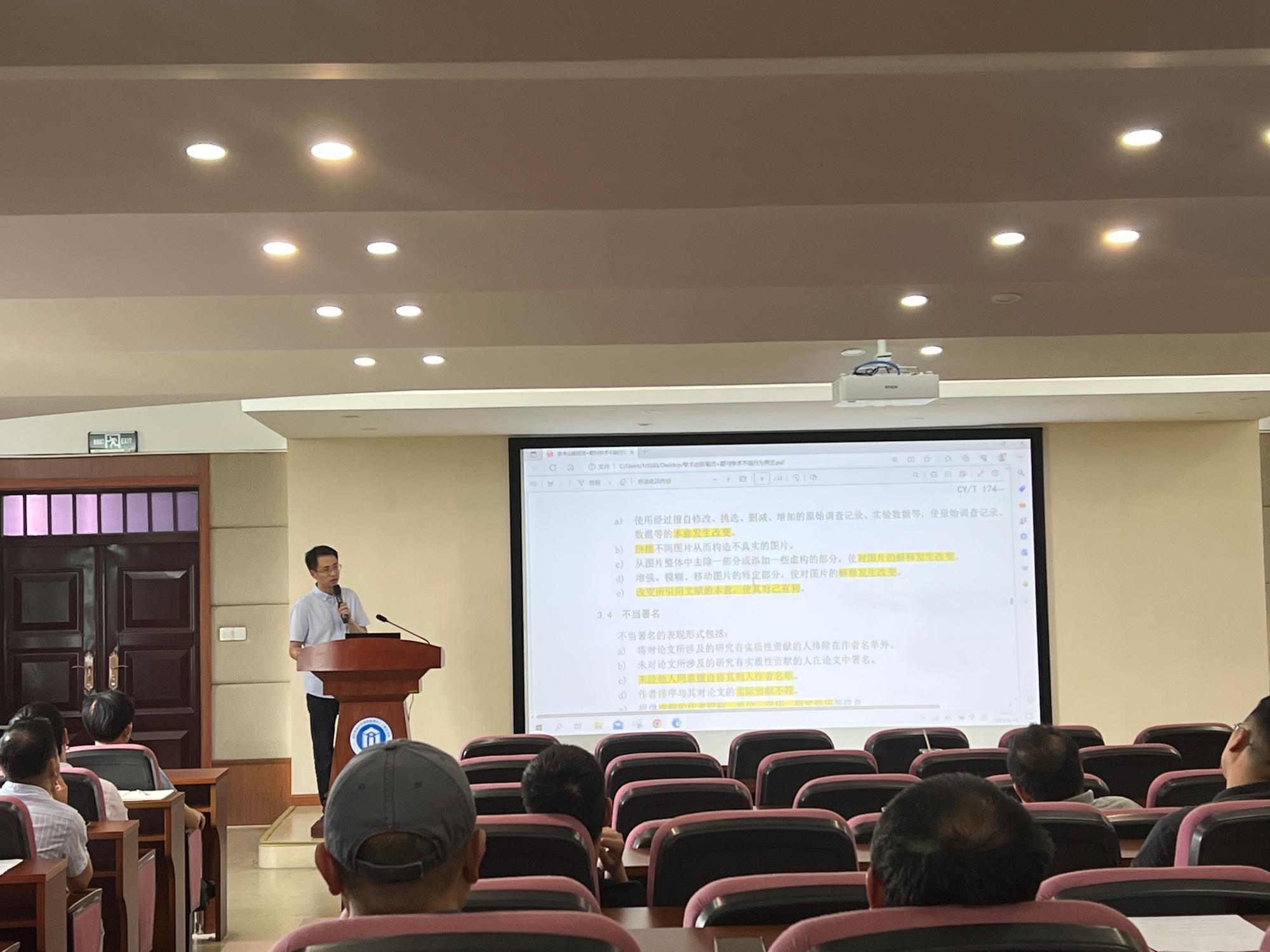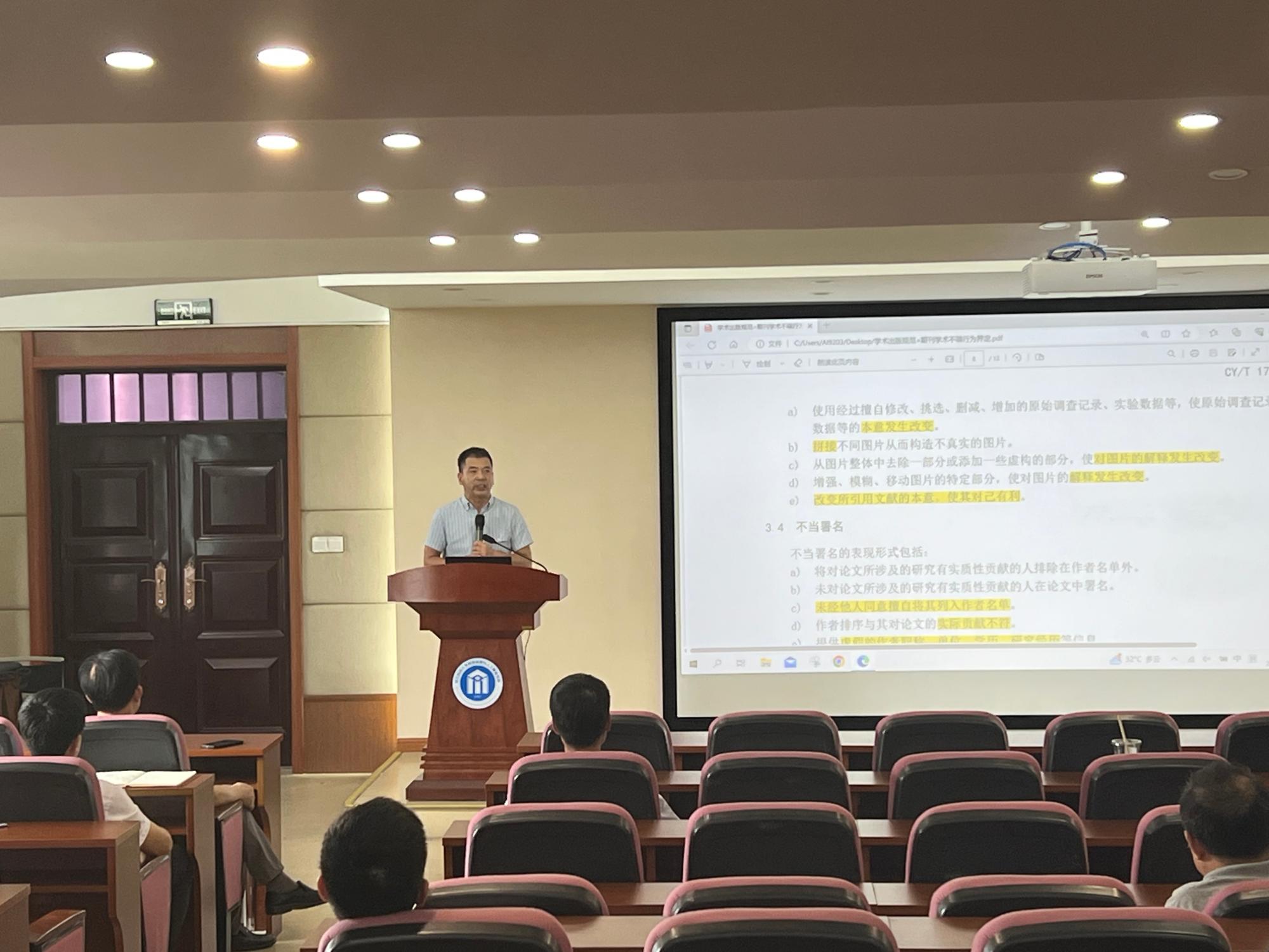 隆清琦副经理传达上级主管部门关于学术不端的相关会议精神,汇报了研究生升学情况与就业情况。