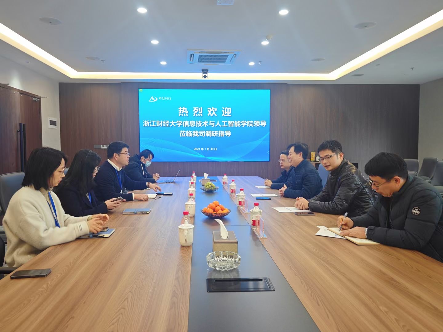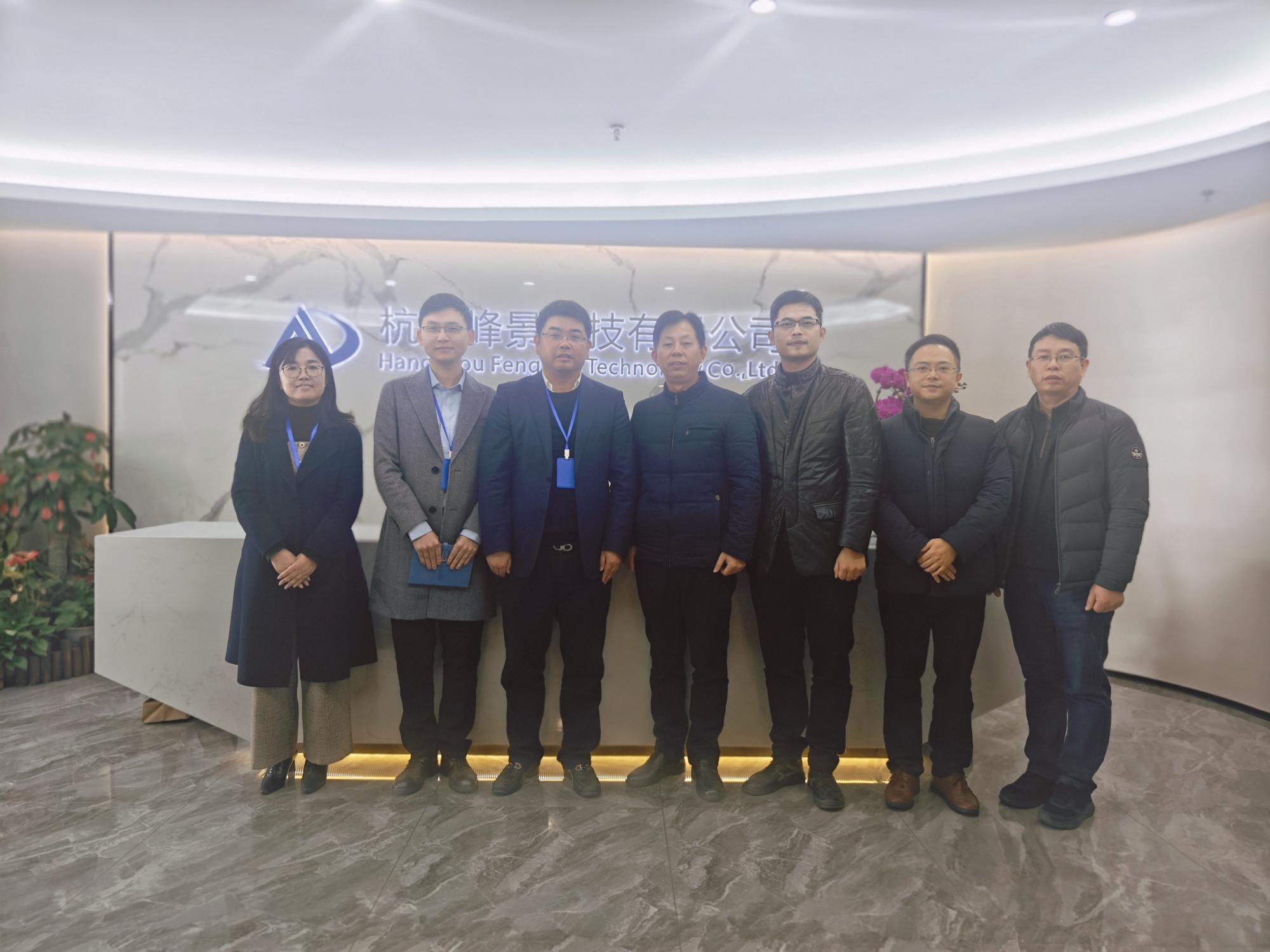 1月30日,信息技术与人工智能公司经理张帅,党委书记吴翼泽,副经理林剑,实验中心主任、社会培训中心主任章华赴杭州峰景科技有限公司访企拓岗,受到了杭州峰景科技有限公司董事长周金满、总裁沈忱、副总裁余艳及相关部门负责人的热情接待。