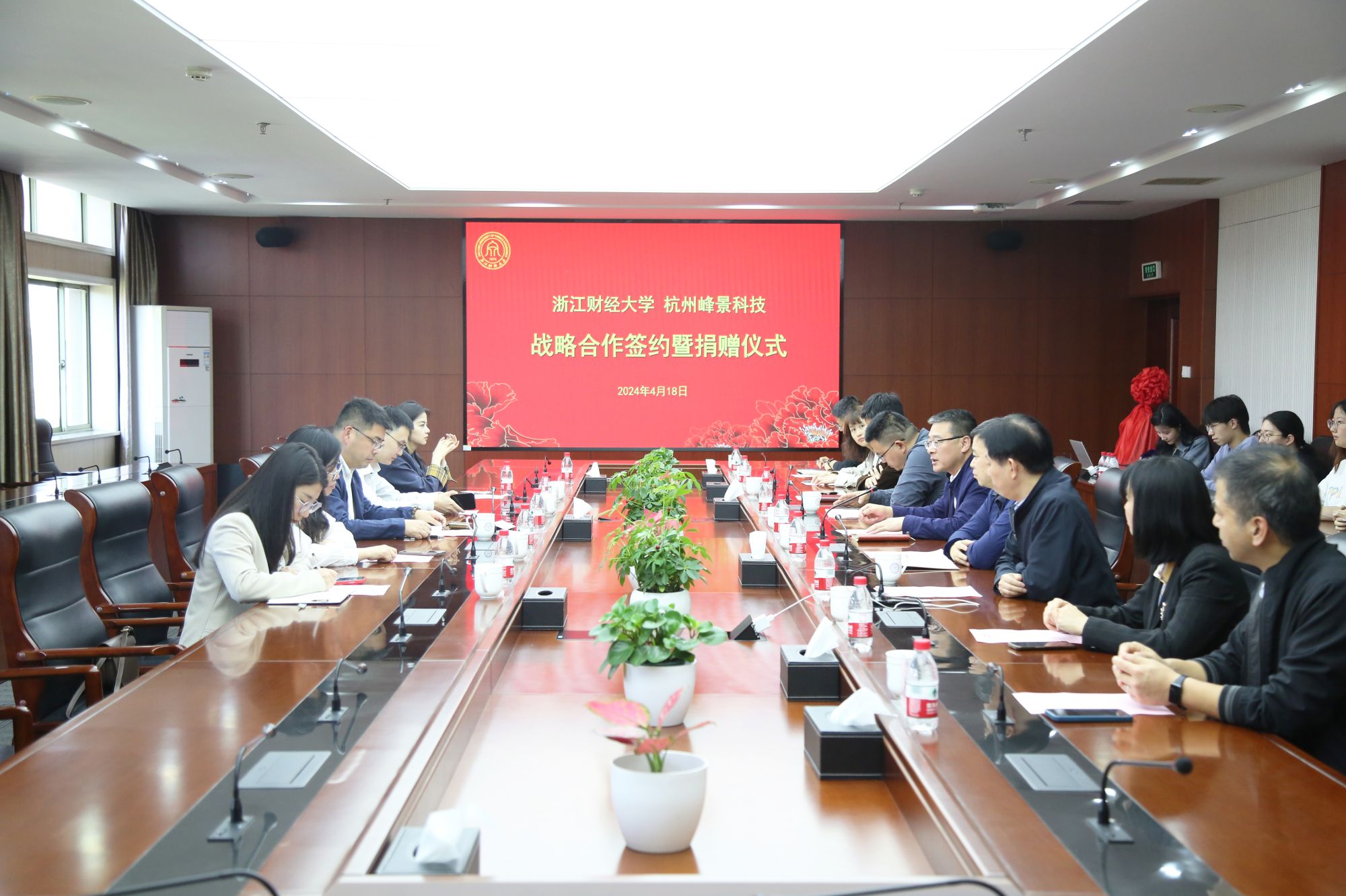 4月18日,永利yl23411官网入口与杭州峰景科技有限公司战略合作签约暨“峰景科技教育基金”捐赠仪式在行政楼412成功举行。峰景科技有限公司在信息技术与人工智能公司设立“峰景科技教育基金”,共建“人工智能创新中心”。公司党委副书记徐晓东、峰景科技有限公司董事长周金满、总裁沈忱、副总裁余艳、董事长助理戴旭笑、企宣主管周立君、校发展联络办公室主任吴玻、社会合作处副处长蒋云兵、信息技术与人工智能公司经理张帅、党委书记吴翼泽、副经理朱凌、党委副书记吴轶韵等代表出席签约仪式。