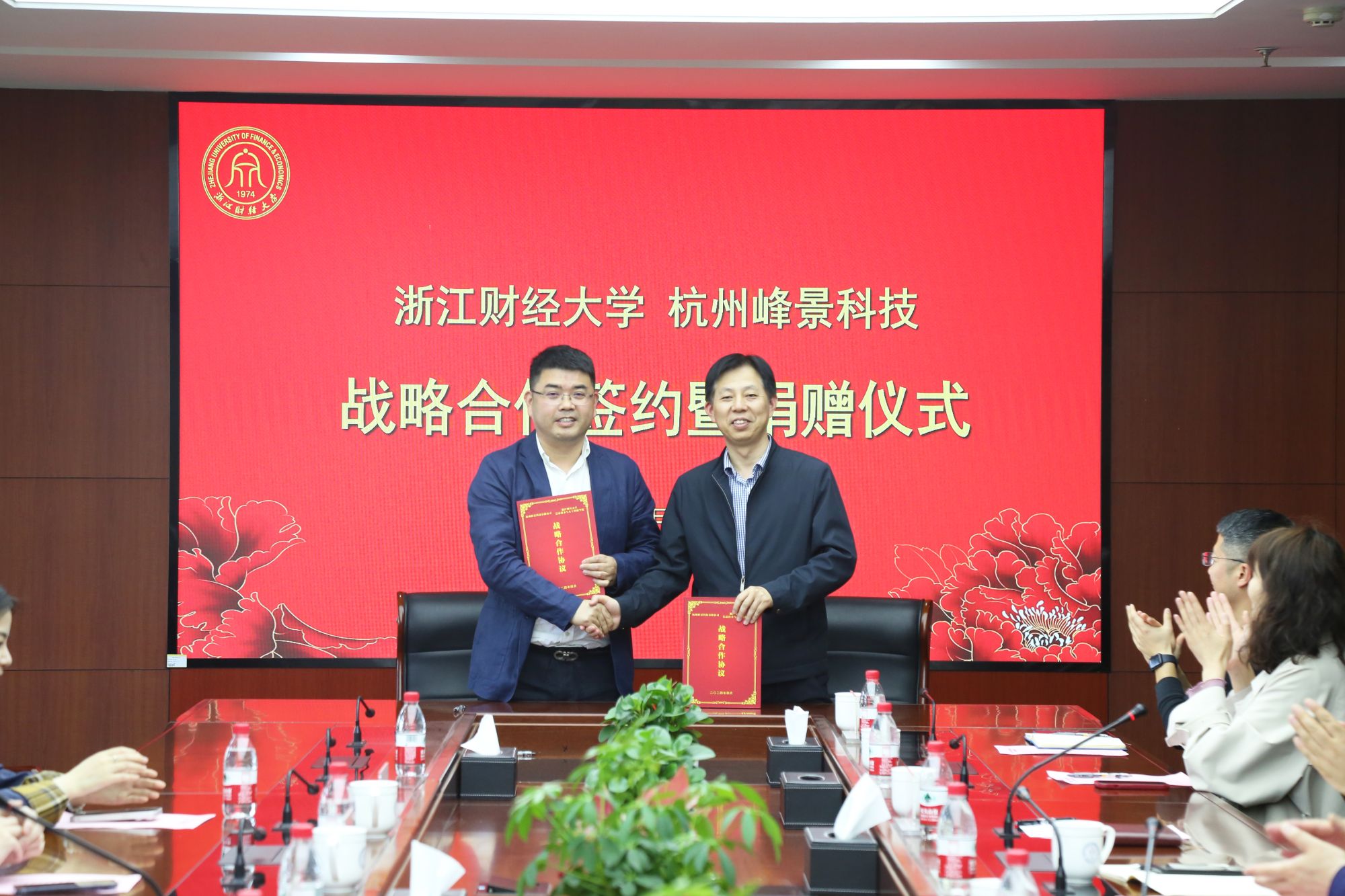 徐晓东代表公司对周金满一行的到来表示热烈欢迎,对峰景科技关心支持公司的人才培养表示崇高敬意,并简要介绍了公司近年来的团队建设、人才培养等情况。他表示,双方有着共同的发展愿景与良好的合作基础,此次战略合作协议的签订与“峰景科技教育基金”的设立将为“新财经战略”的实施注入强劲的动力,期待双方以此为契机携手奋进,在人才共育、科研共研、产教共融、基地共建、成果共享等方面推动更紧密、更深入的合作。