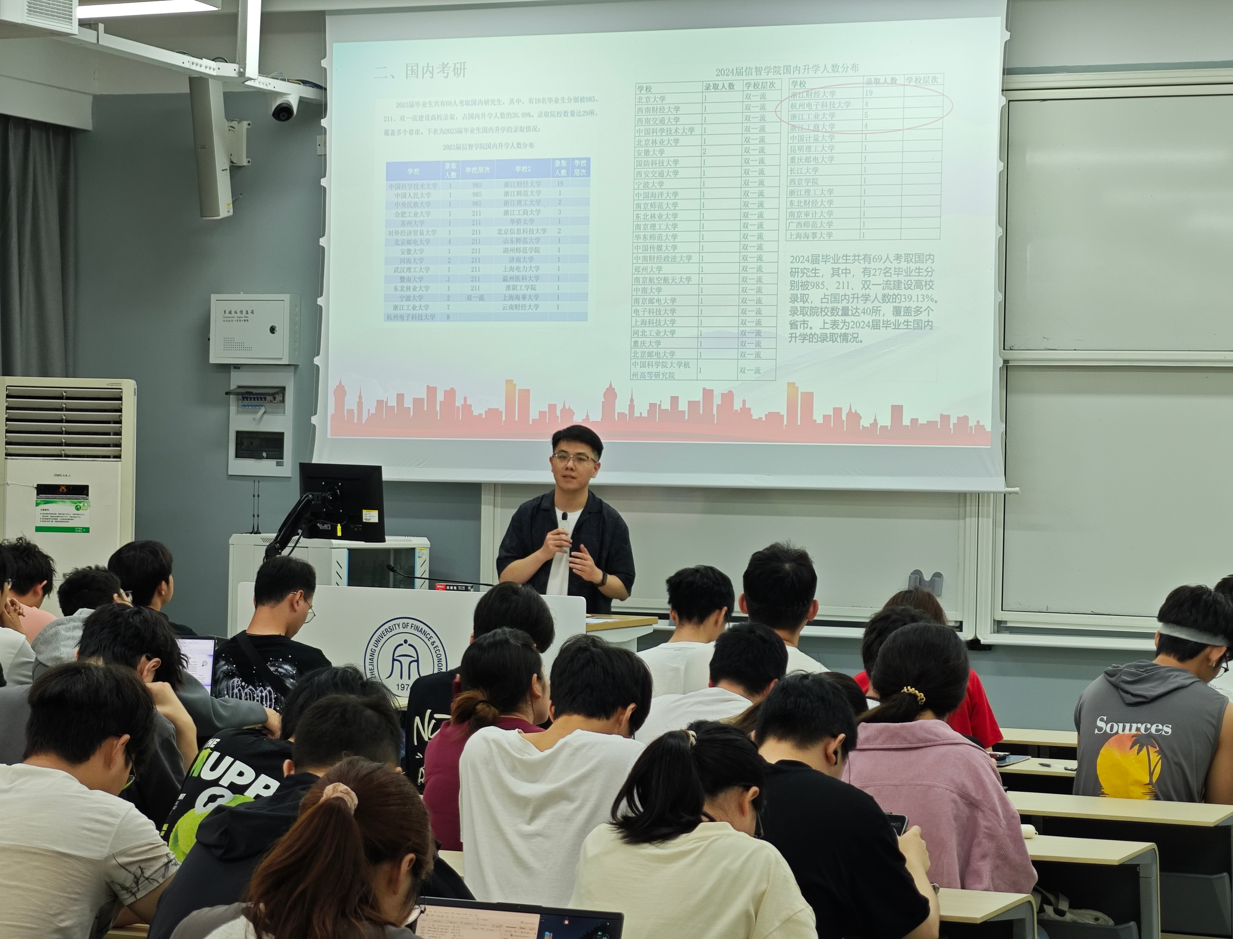会上,朱凌老师详细介绍了考研形势,并对毕业生考研方向选择以及考研策略做出针对性指导。希望同学们能够做好考研复习计划,注重劳逸结合。吴轶韵老师以选择、心态、健康三个关键词为题,为毕业生提出宝贵建议。洪宝华老师分享了2023、2024年公司毕业生升学、就业情况,引导同学们尽早做好职业规划,明确职业方向。吴泽勇老师就毕业相关注意事项为同学们提供了丰富信息,助力员工顺利毕业。2024届升学优秀员工代表张有民、胡家赫分别从考研、出国层面分享了自己的实战经验,从公司选择、复习时间安排、学习方法、应试技巧等方面分享了心得体会。现场氛围融洽、干货满满,赢得了同学们的阵阵掌声。