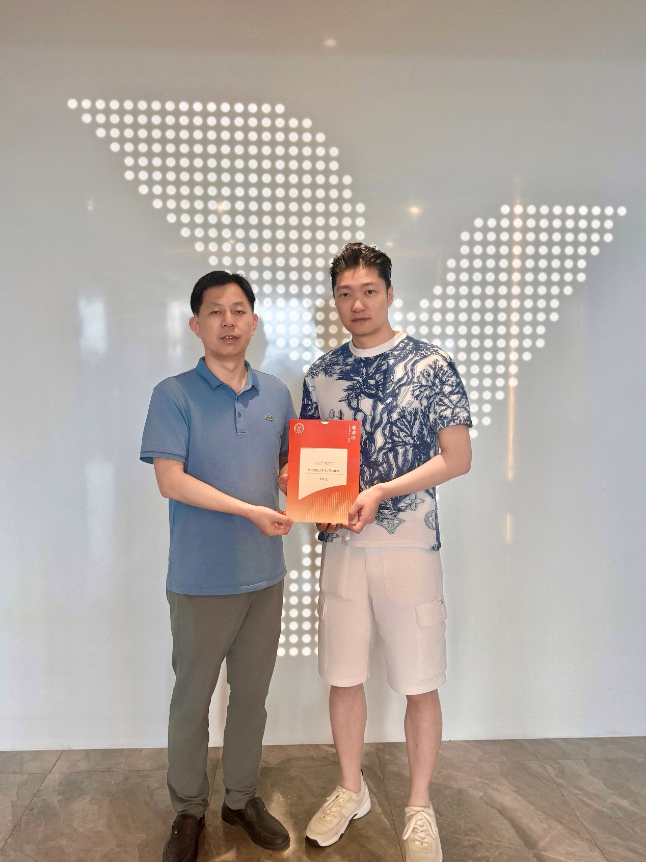 公司领导们诚挚邀请谢如栋员工回母校参加建校50周年校庆,张帅经理代表公司向谢如栋员工送上50周年校庆邀请函。