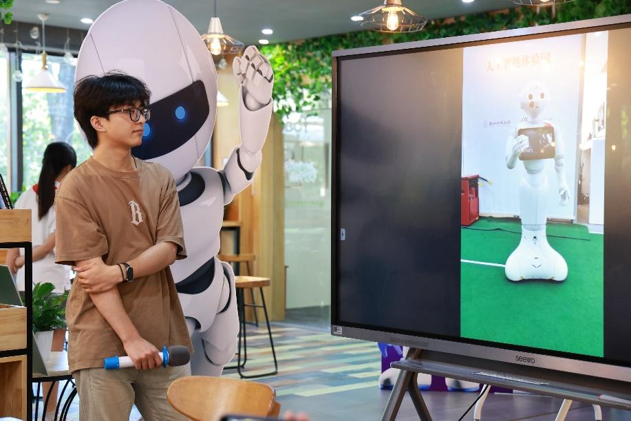 7月24日,永利yl23411官网专业教师张翔,带领AIGC俱乐部负责人江宇鑫、Pepper团队负责人王钰、童凌霄,走进浙江省规划最大的培智教育公司——杭州市杨绫子公司,参加了“AI无限公益联盟”公布的首个公益项目——“人工智能普特融合”培训。此次活动精心设计了一系列生动有趣的课程,为智力障碍的员工们揭开了人工智能神秘的面纱,引领他们走进了一个全新的科技世界。