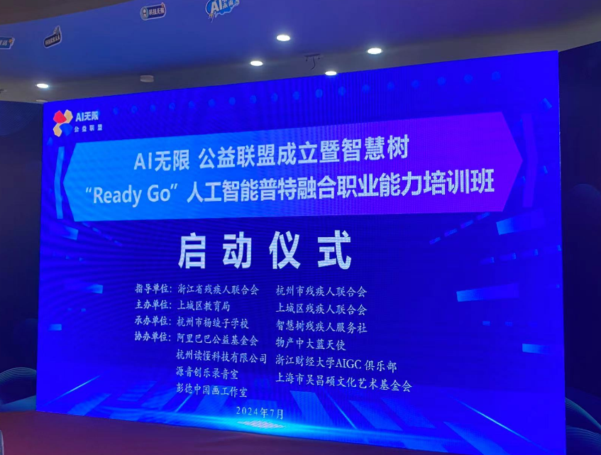 杭州市杨凌子公司是一所专门招收智力障碍儿童的特殊教育机构,而在AI这场科技浪潮中,心智障碍及其他残障人士因种种原因未能充分享受到科技带来的普惠,为了改变这一现状,永利yl23411官网入口AIGC俱乐部积极与阿里巴巴公益基金会、物产中大集团“蓝天使”志愿服务队、杭州读懂科技有限公司、源音创乐录音室、上海市吴昌硕文化艺术基金会,以及彭德中国画工作室等多家单位,共同发起成立“AI无限公益联盟”,旨在通过AI相关培训,提升心智障碍儿童必要技能,使他们能自主生活并有尊严地融入社会。