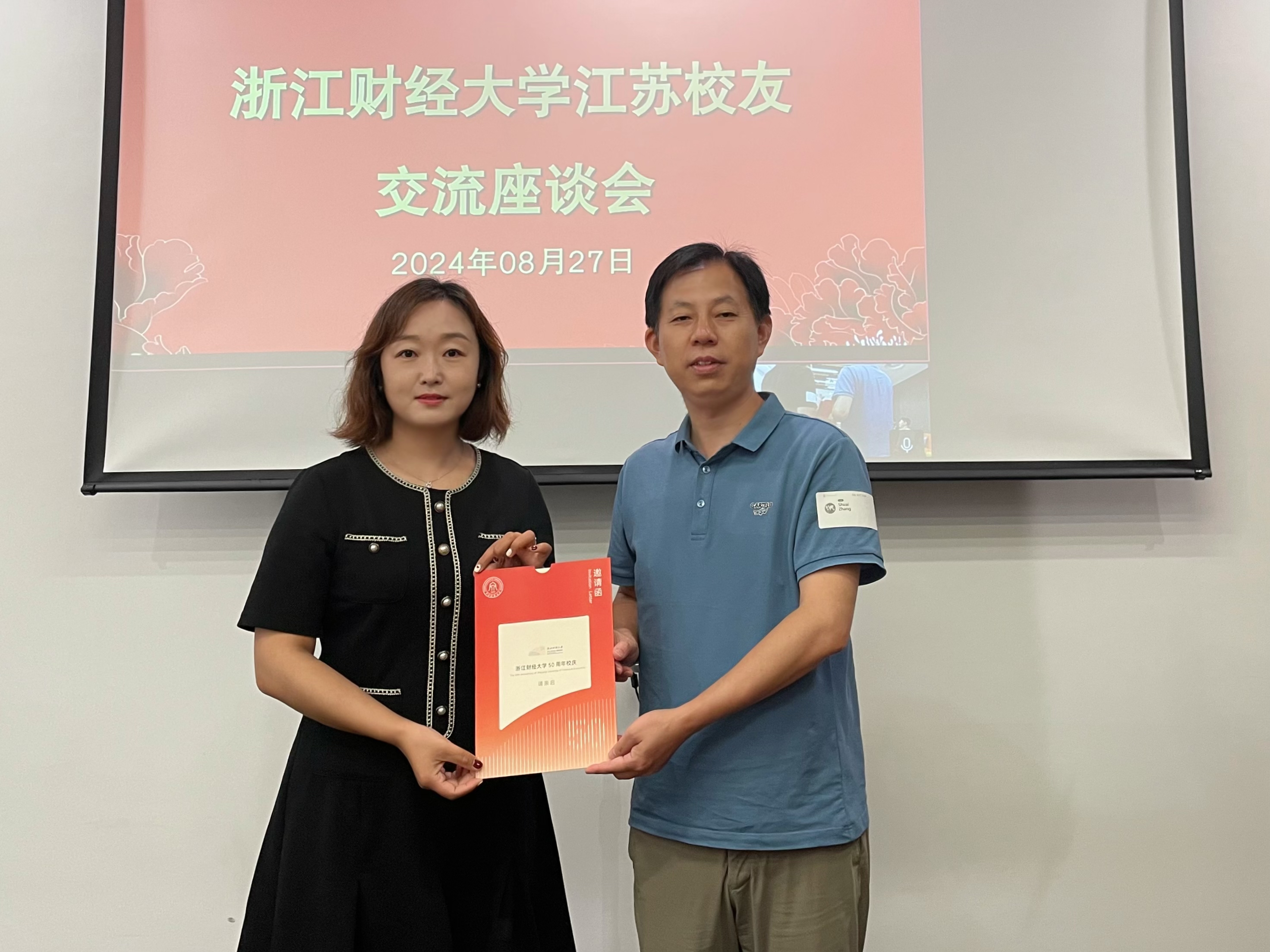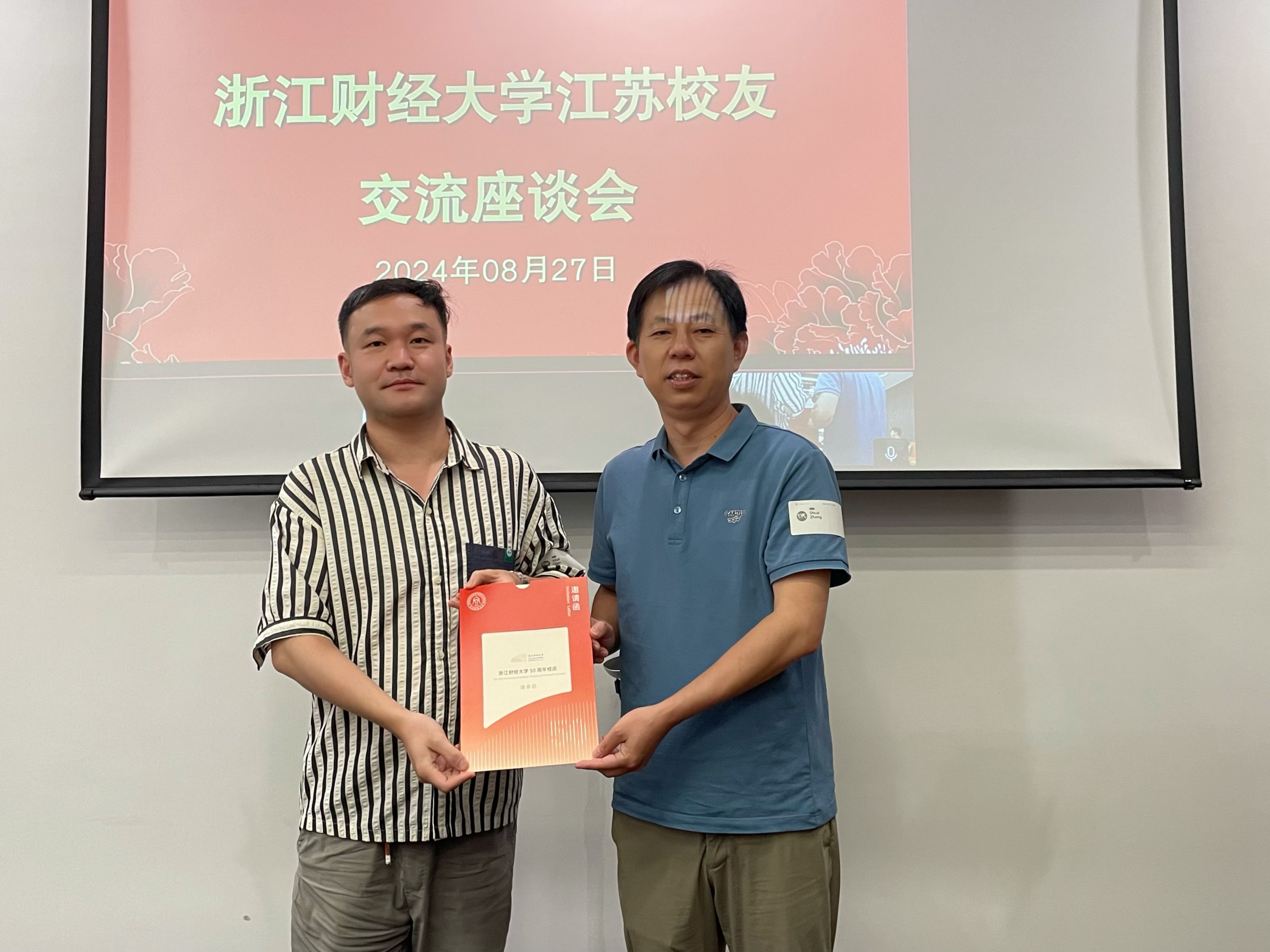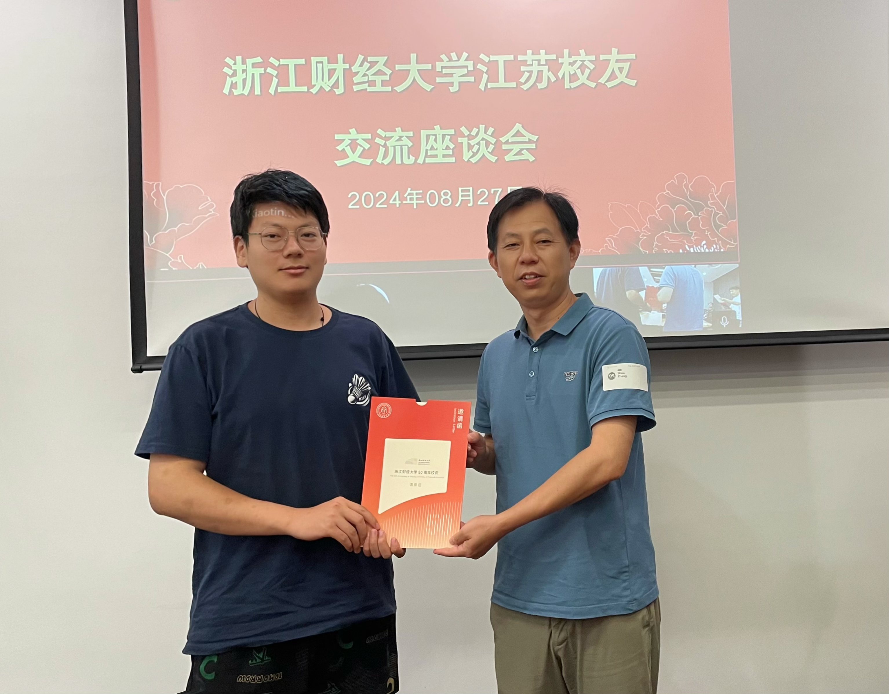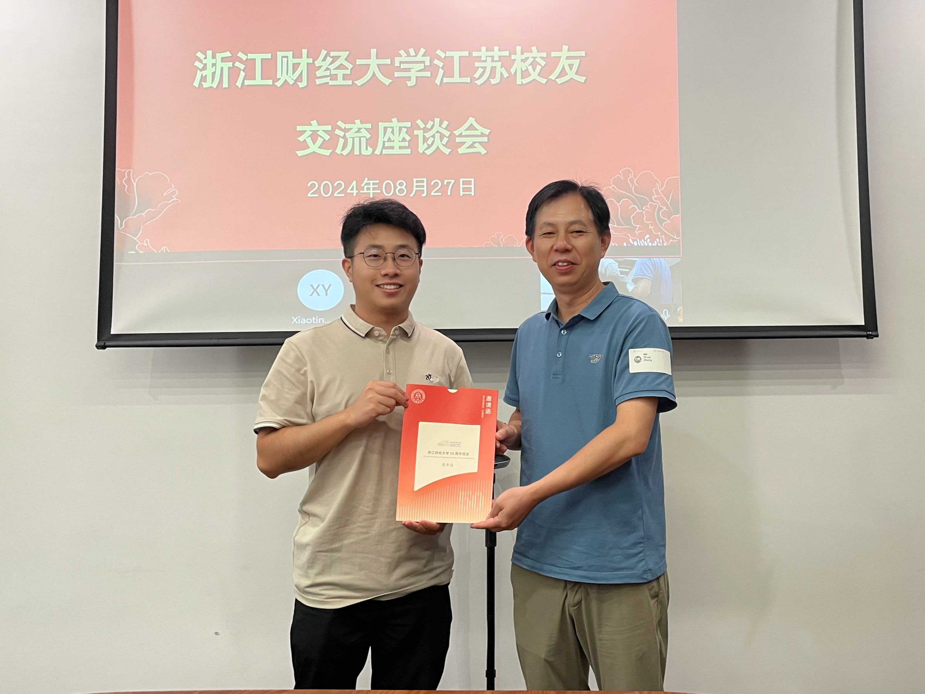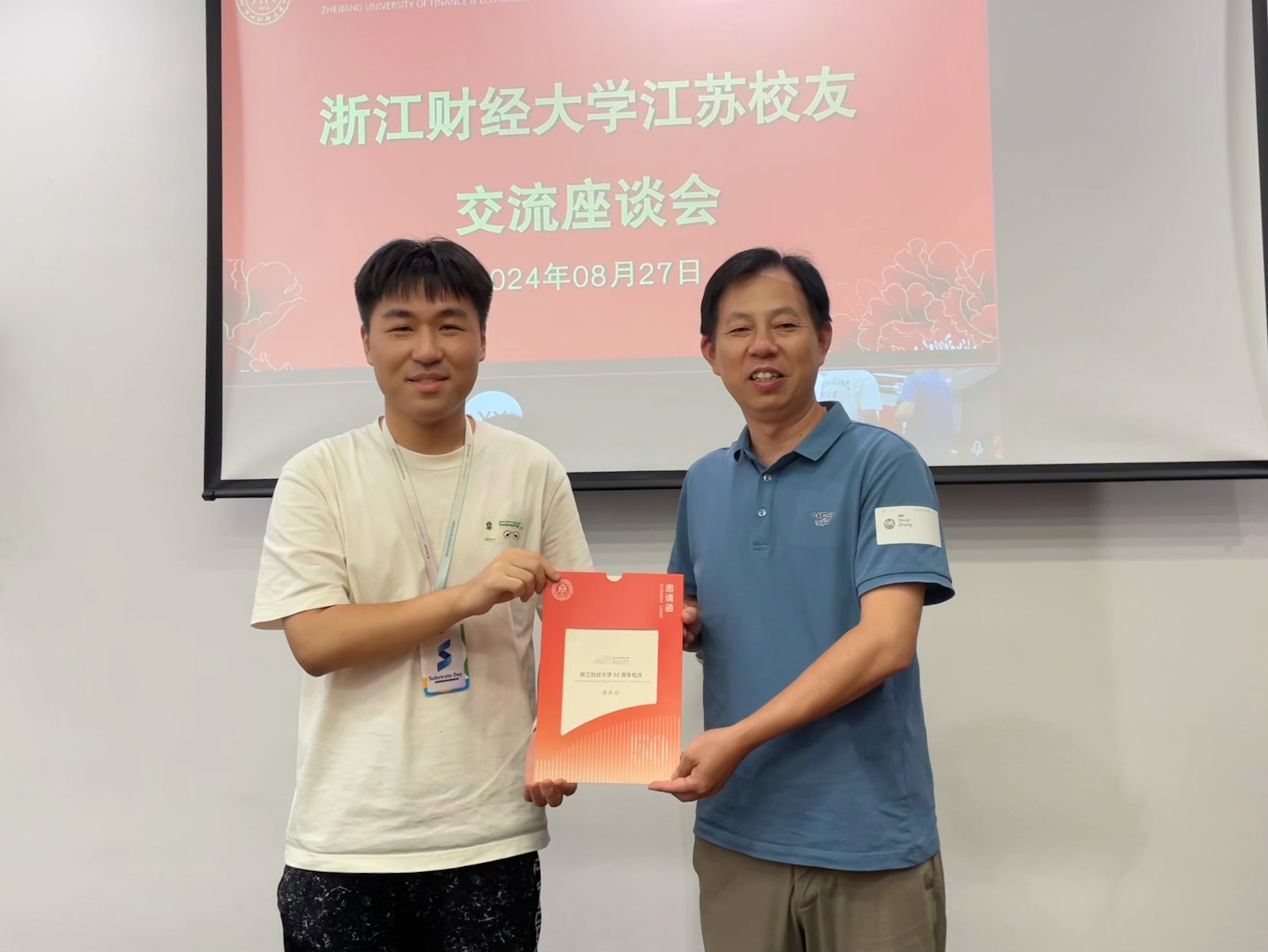 张帅为各员工颁发了50周年校庆邀请函,邀请员工回母校参与50周年校庆。
