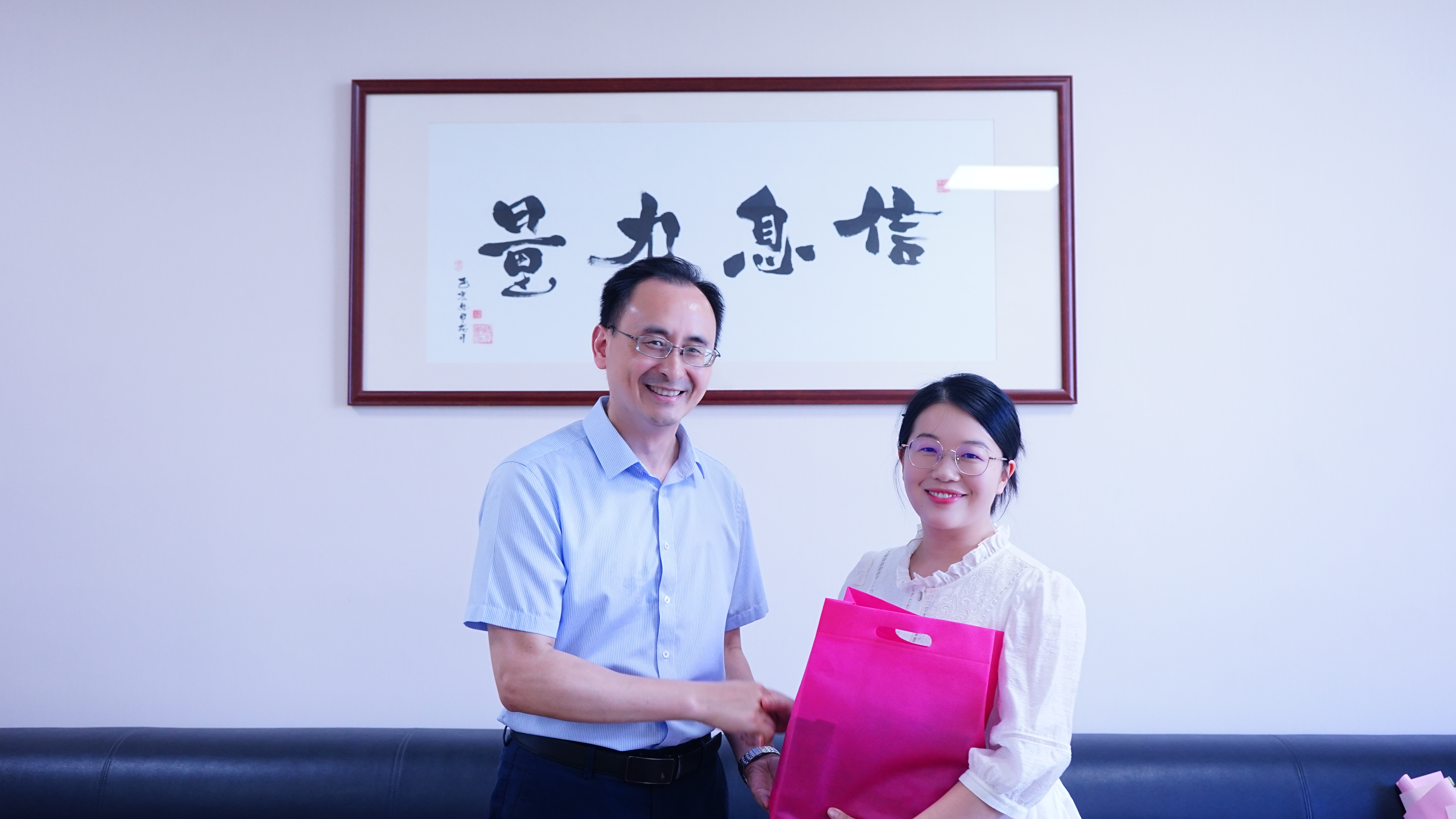 邓川处长则关心地询问了彭莉莎老师的工作与生活近况,表示公司将一如既往地支持教师的教学科研工作和个人发展,让每一位教师都能在财大这片沃土上茁壮成长。