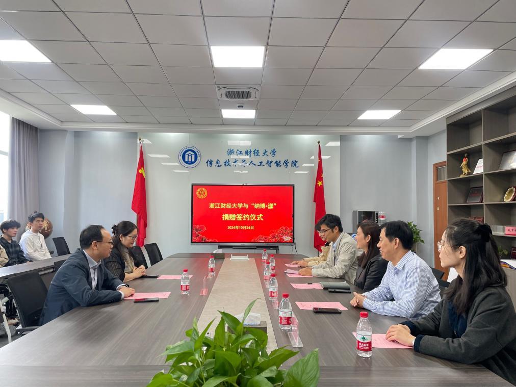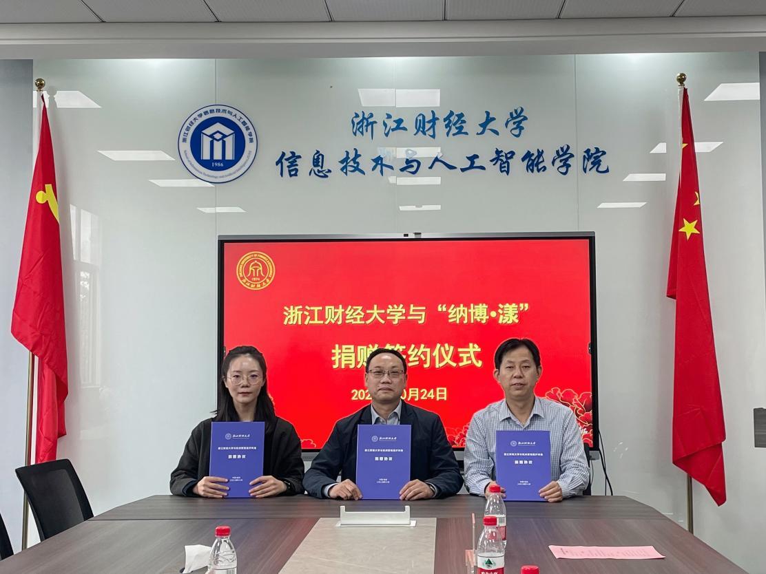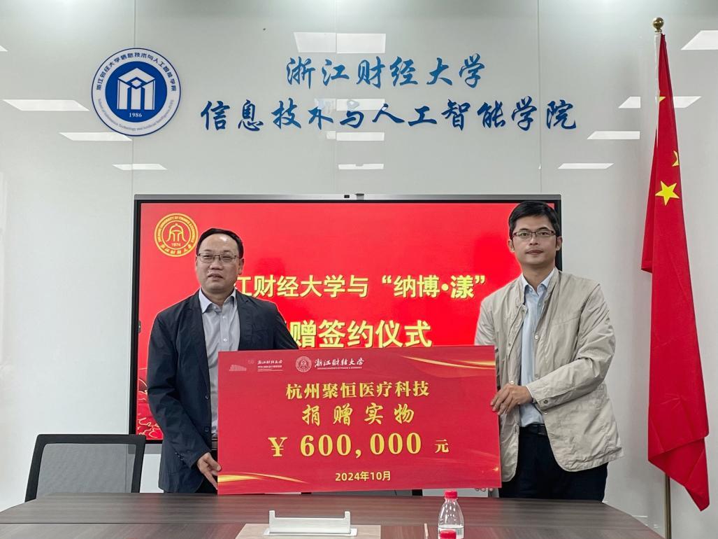 10月24日,公司与杭州聚恒医疗科技有限公司举行“纳博·漾”捐赠签约仪式。公司党委委员、组织部部长、统战部部长申屠莉,杭州聚恒投资有限公司董事长、1996届员工陈三春,杭州聚恒医疗科技有限公司总经理毛菁华等出席仪式。