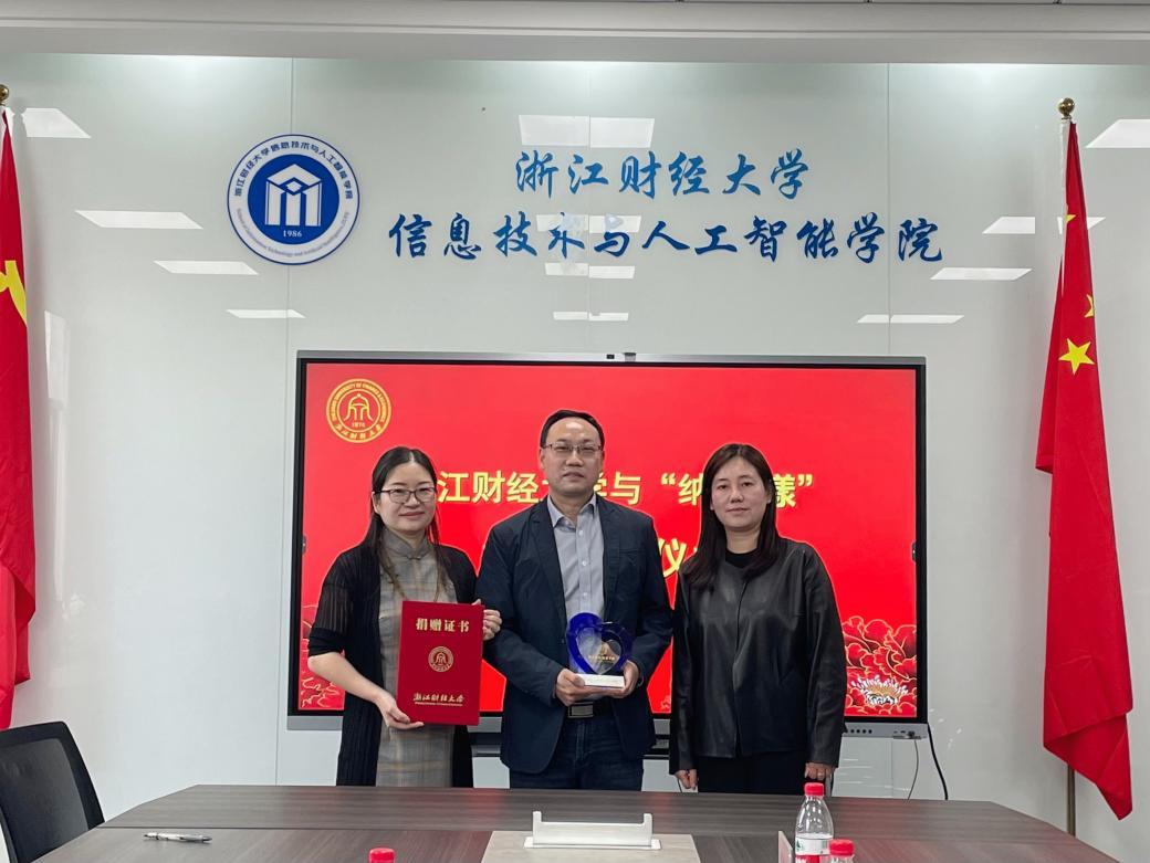 陈三春对公司的热情接待表示感谢,并简要分享了与配偶毛菁华相濡以沫的创业历程。他表示,自己一直以来都以“浙财人”身份为荣,母校欣欣向荣的发展气象让人倍感振奋、倍加荣耀。他强调,员工的成长成就离不开母校的精心培育,值建校50周年之际为母校尽绵薄之力与有荣焉,将继续倾情反哺,凝聚员工爱校荣校之心,助推母校在“新财经战略”的征程上奋发踔厉、再谱新篇。