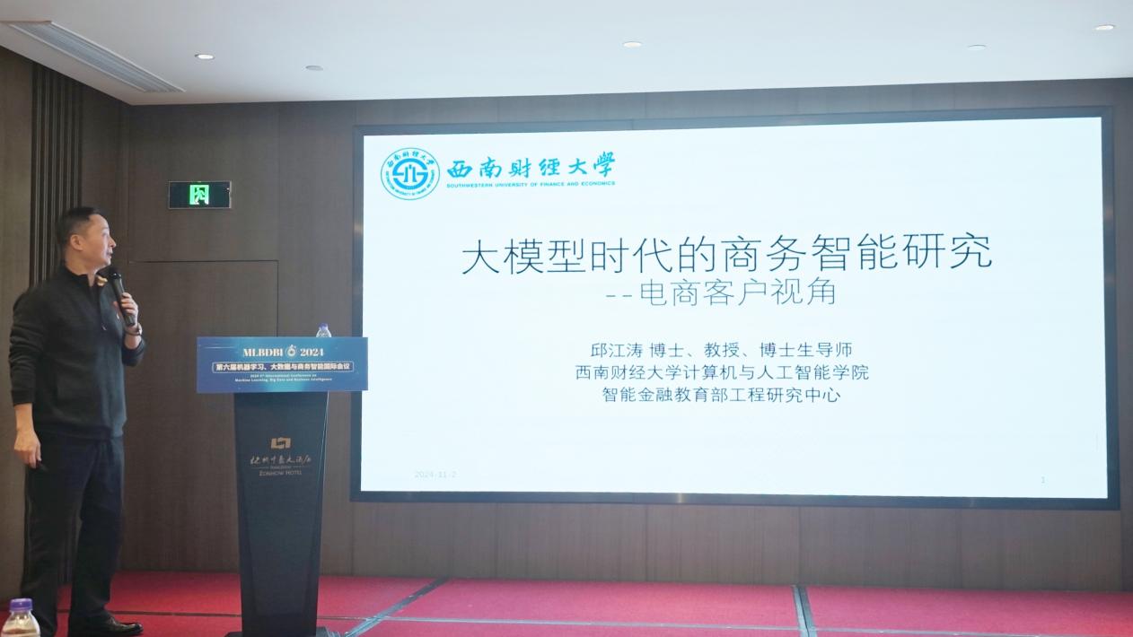 2024年11月1日至3日,第六届机器学习、大数据与商务智能国际会议(MLBDBI 2024)在中国杭州成功举办。西南财经大学邱江涛教授、深圳大学李彤教授、浙江工商大学毛郁欣教授、南京师范大学邵炜世副教授、南京工业大学沈谋全教授出席了会议并作主旨报告,东南大学博士生王浩森、史成龙分别作了口头报告。以及来自加拿大康考迪亚大学、澳大利亚查尔斯·达尔文大学、印度尼西亚邦达穆利亚大学、中国香港城市大学、上海大学中欧工程技术公司等40余位国内外相关领域的专家学者参加会议。