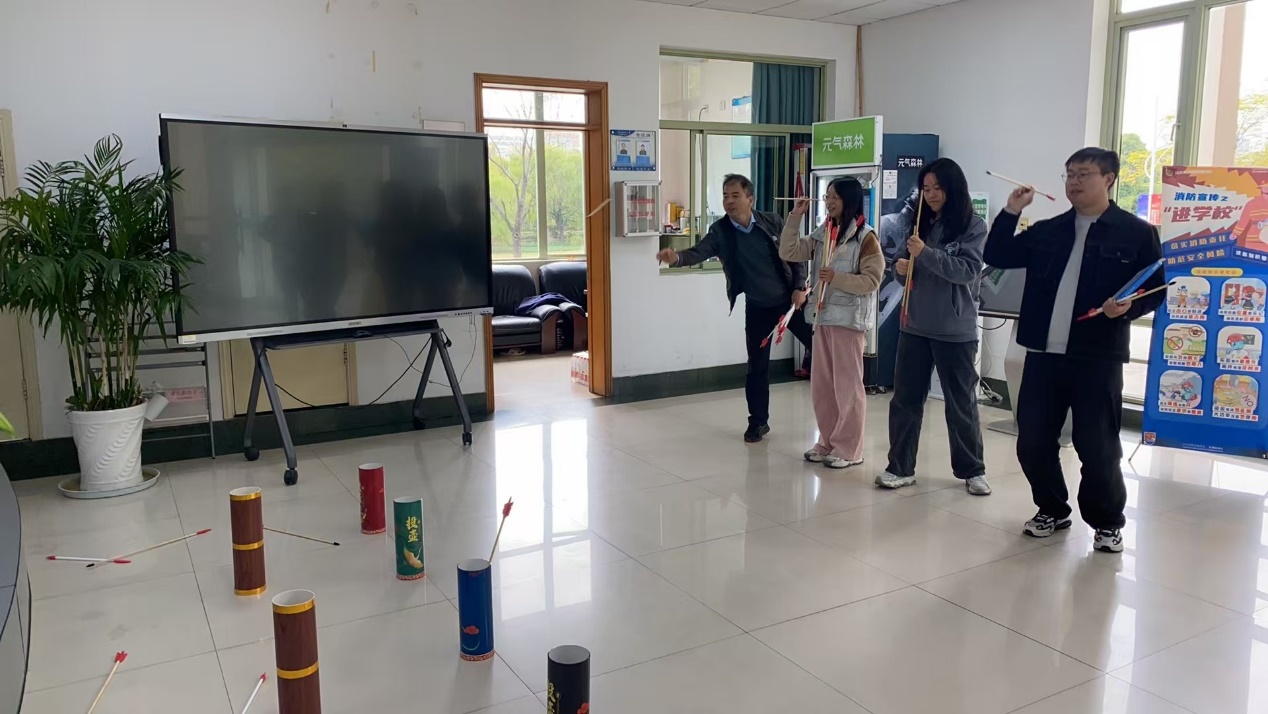 本次活动对于参赛者要求不高,普及性较广,活动现场气氛热烈。游戏依据进行远距离设置不同的分值,具有一定的挑战难度,考验各位老师的策略谋划和出箭力度把握的稳定性,是否能准确命中壶口最为关键。活动现场掌声、欢笑声、喝彩声不断,选手们场上场下互动交流投射技巧,相互鼓励,手握箭矢孤注一掷,听飞箭落壶欢呼雀跃!