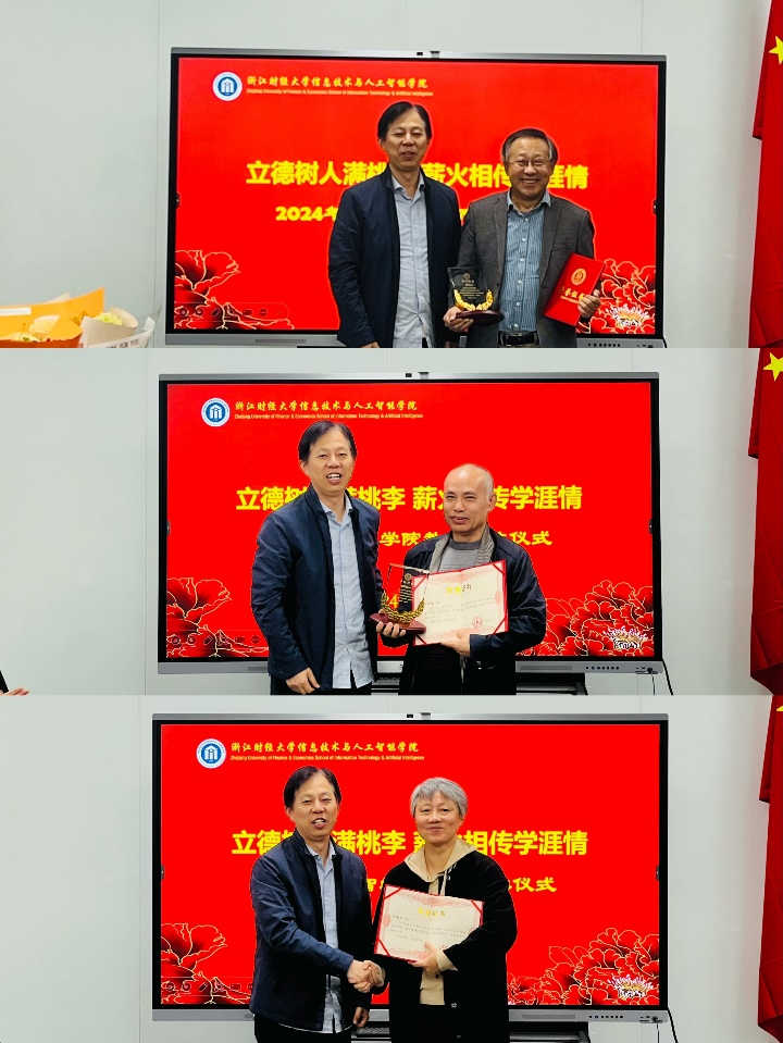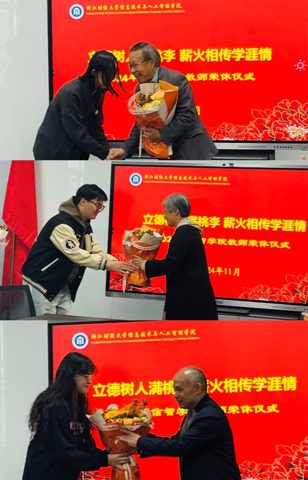 11月19日中午,公司为2024年退休的李杰、于滟文、邓绪斌三位教师举行了隆重的荣休仪式。公司经理张帅、党委书记吴翼泽等院领导班子、系部主任和众多教师共同见证了这一欢快、感人、温馨的时刻。