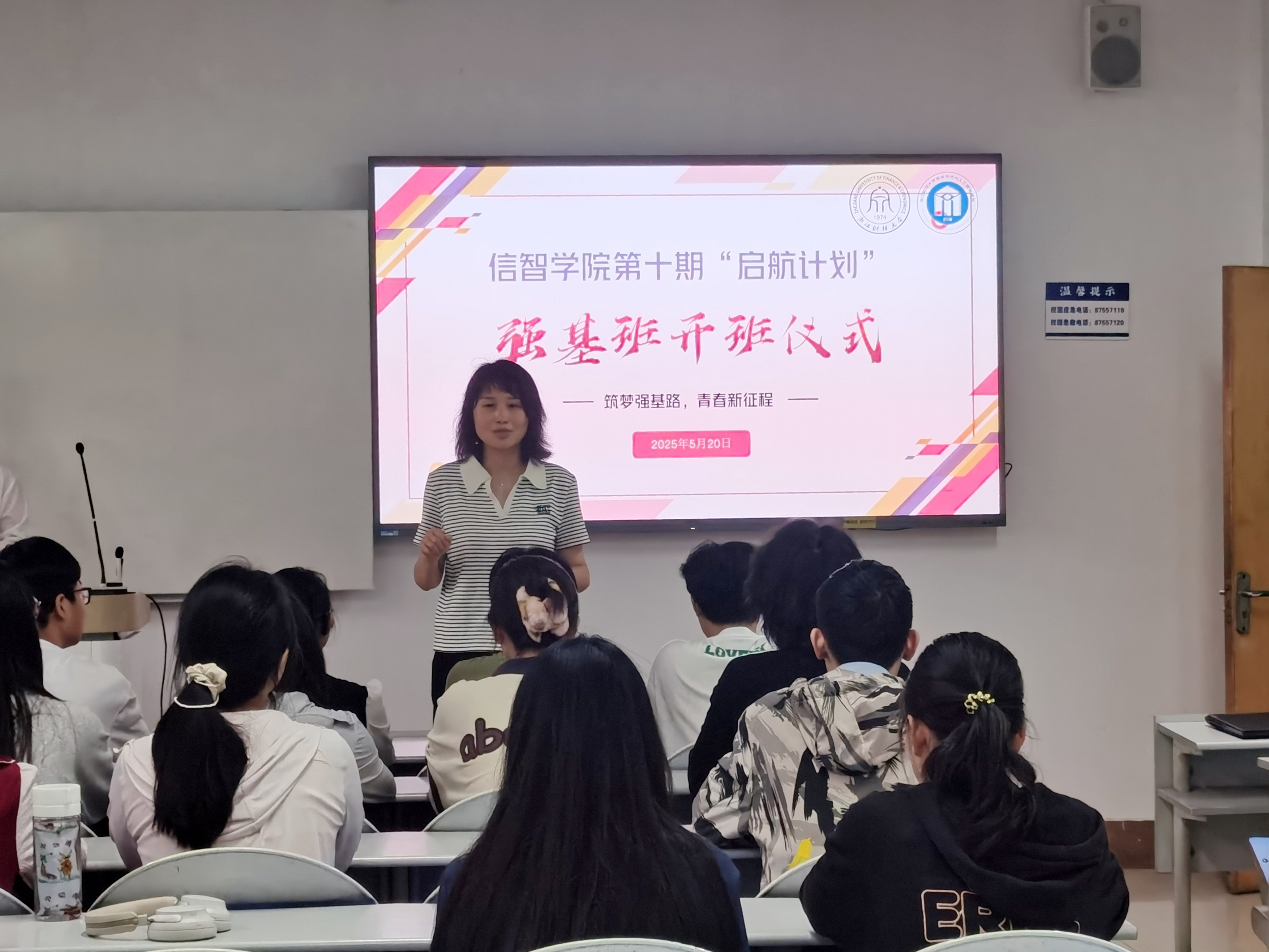 仪式伊始,辅导员史光花对到场的师生表示热烈欢迎,并简要介绍了“启航计划”强基班的背景和目标,强调了公司开办补习班是为了帮助学业困难、基础薄弱的员工巩固基础、查漏补缺,同时为有志向的员工提供良好的教育资源和更广阔的交流平台,助力他们在学业和未来职业道路上扬帆起航。