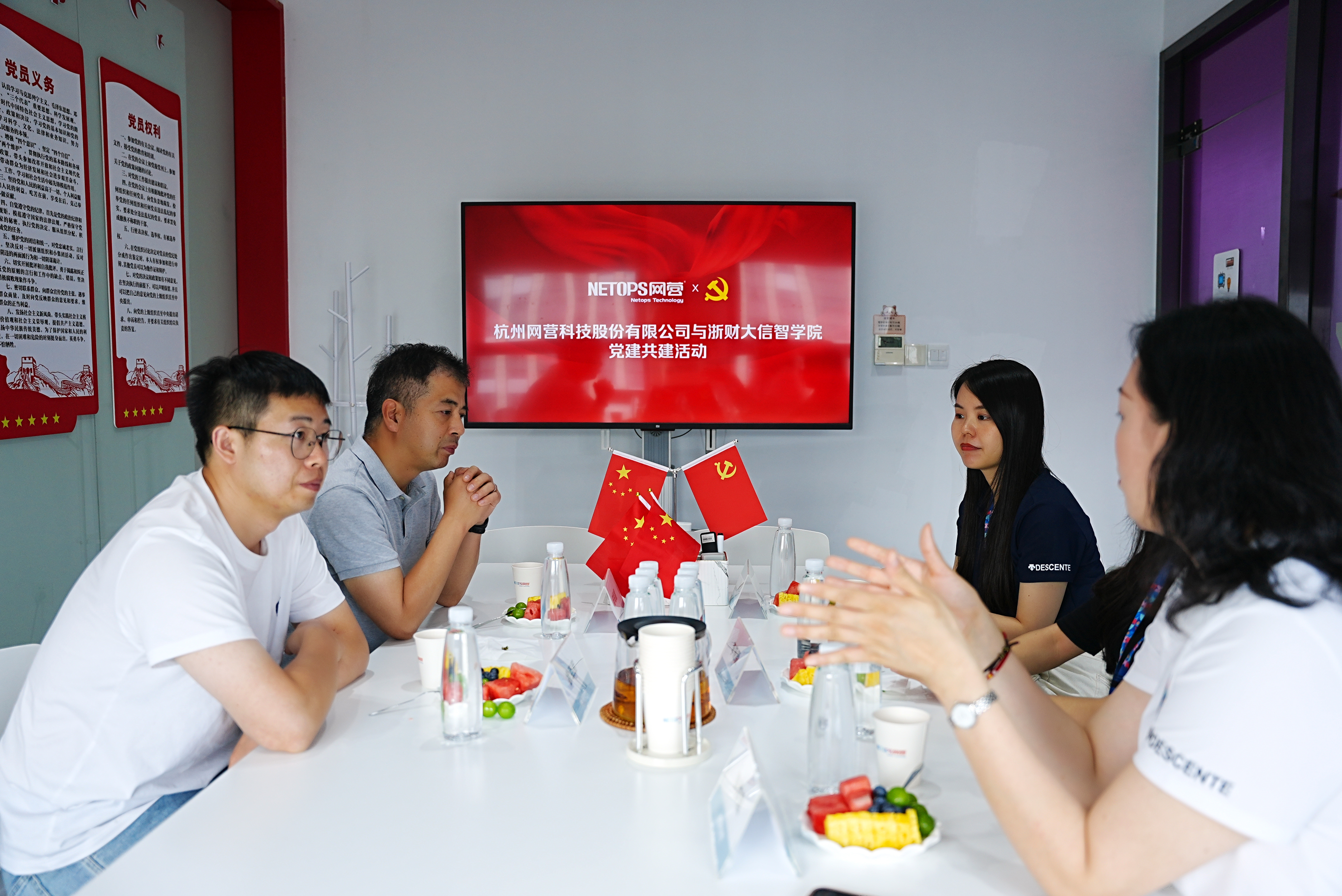 为深化校企合作、推动产教融合,探索党建引领下的人才培养新模式,5月22日,公司经理助理、计算机系主任陈明晶,组织员徐军军带领员工一行赴杭州网营科技有限公司参观交流,并开展党建共建活动。杭州网营科技公司项目总监陈洁、人力资源总监兼宣传委员池平平、人力资源负责人李晓颖及相关部门代表热情接待并全程参与。