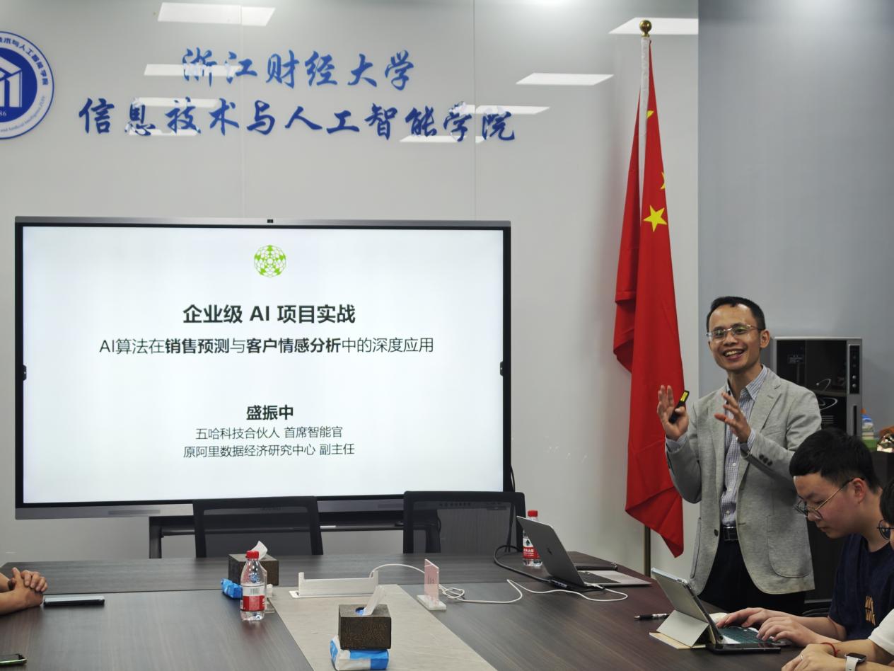 5 月 29 日下午 2 时,永利yl23411官网于 9 号楼 404 会议室成功举办了 “企业级 AI 项目实战 ——AI 算法在销售预测与客户情感分析中的深度应用” 讲座。本次讲座特邀五哈科技合伙人盛振中先生作为嘉宾,吸引了众多师生参与。
