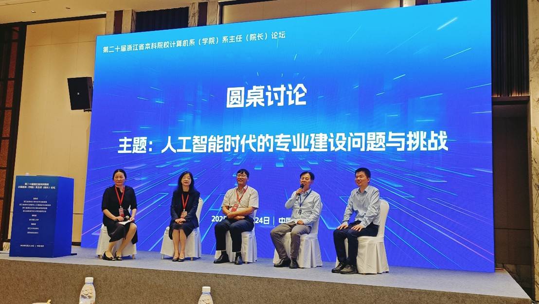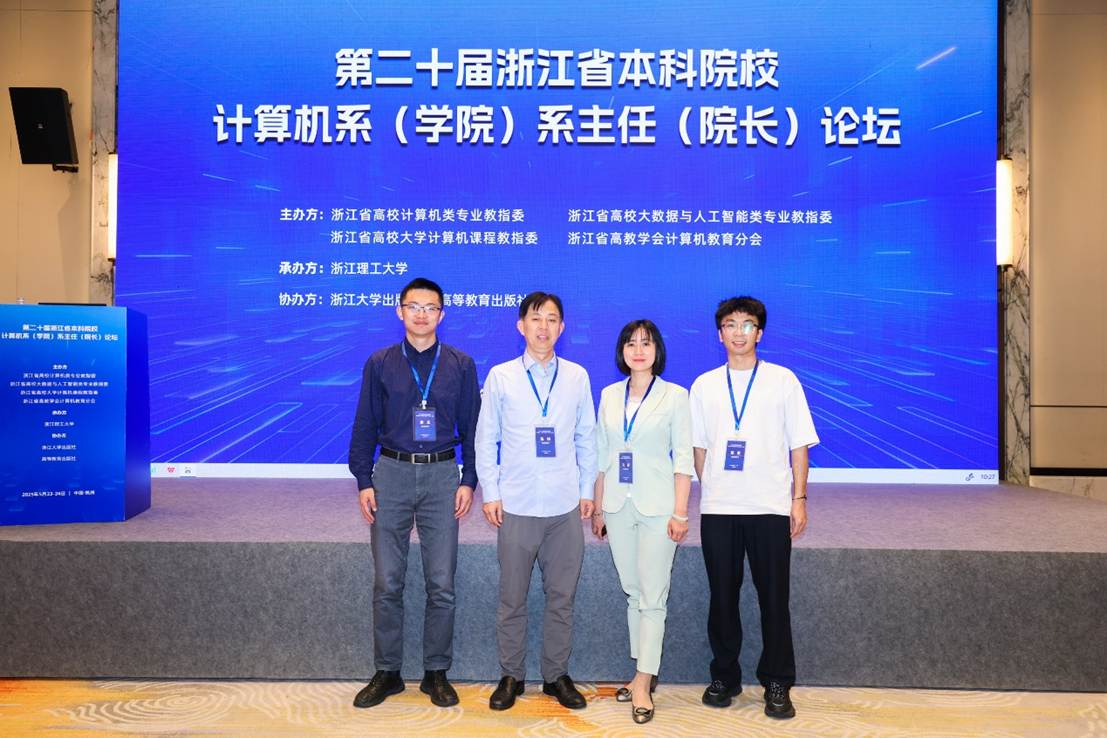 2025年5月23-24日,第二十届浙江省本科院校计算机系(公司)系主任(经理)论坛在浙江杭州召开。论坛由浙江省高校计算机类专业教指委、大数据与人工智能类专业教指委、大学计算机课程教指委及高教学会计算机教育分会联合主办,浙江理工大学承办,浙江大学出版社、高等教育出版社协办。公司经理张帅、副经理朱凌、软件工程系主任涂乐、专任教师陈勇四位老师应邀参加论坛。
