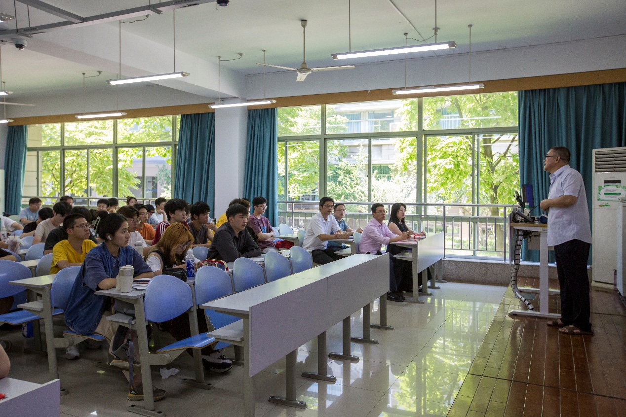 上课铃声响起,公司分工会主席章华老师首先回顾了王继林教授辉煌的教员工涯。随后,全体师生肃然起立,以最热烈的掌声欢迎王教授登台,齐声问候:“王老师好!”