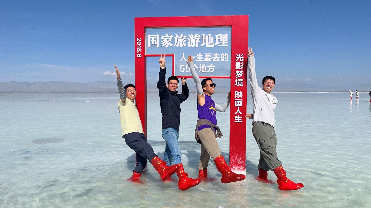 7月8日聚焦青海核心自然景观:上午抵达中国最大咸水湖青海湖,湛蓝湖面与雪山、草原相连,微风拂过波光粼粼,老师们沿湖漫步,青草气息驱散疲惫;午后前往“天空之镜”茶卡盐湖——曾入选《国家旅游地理》“人一生必去的55个地方”,平静湖面倒映天地与身影,老师们脱鞋入浅滩拍“人在镜中走”的创意照,欢声笑语回荡盐湖上空。