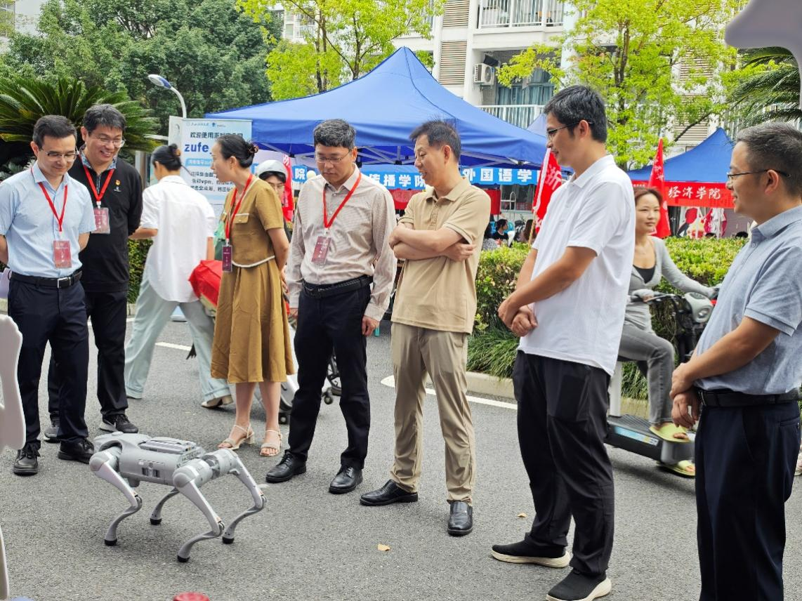 在迎新现场,公司的智能机器狗表演吸引了大批新生和家长驻足,其灵活精准的表演不仅展现了公司在人工智能领域的技术实力,更以生动有趣的方式让新生感受到智能科技的魅力。