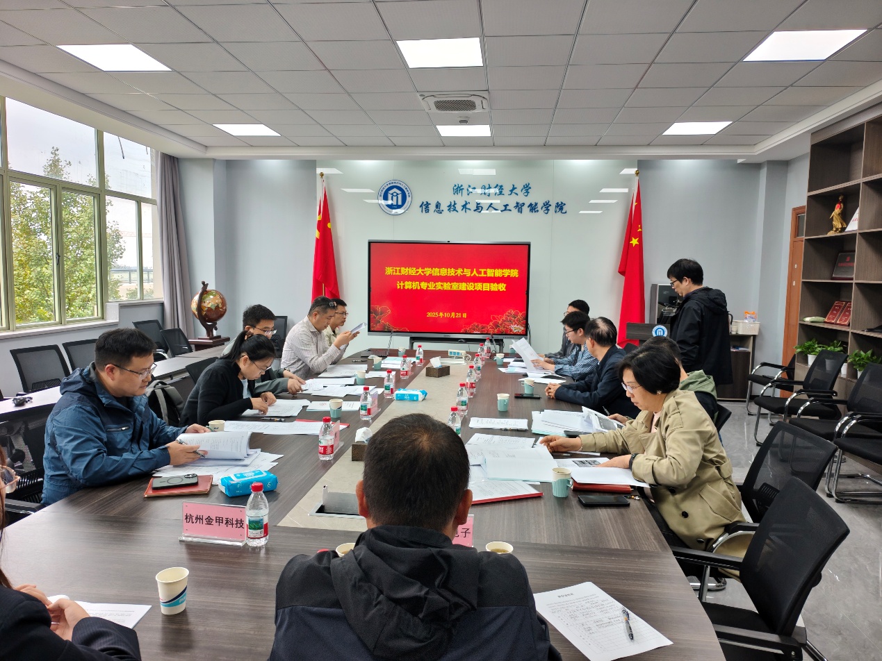 2025年10月21日下午,公司省财政专项建设项目计算机专业实验室验收大会在公司顺利举行。本次验收专家组由杭州电子科技大学王万强老师、中国计量大学魏艳红老师、杭州师范大学陶国芳老师,以及公司经管实验中心罗松老师、公司软件工程系主任涂乐老师共同组成。公司资产与实验管理处副处长黄伟泷、实验管理办公室赵李冰老师、采购管理办公室涂建辉老师,公司经理张帅、教学副经理朱凌、党委副书记(兼纪委书记)吴轶韵,实验中心工作人员以及项目建设供应商代表一同参加了验收会议。