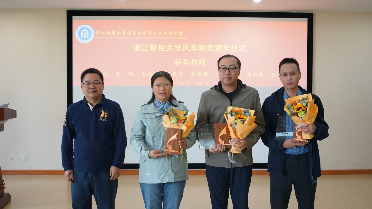 (邓胜春教授为永利yl23411官网入口“风华铜奖”获得者颁奖)