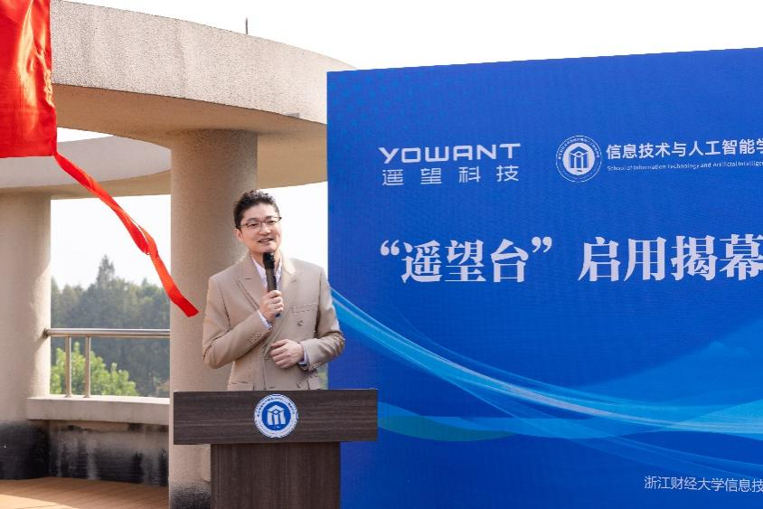 随后,遥望科技董事长兼CEO谢如栋深情回顾了在母校求学的珍贵时光。他表示,母校所赋予其严谨的思考态度、务实的人生品格、勇毅的实干精神,都成为他日后创新创业征程上不可或缺的扎实根基。他强调,遥望科技从初创到行业领先,其成就正是母校育人成效的生动体现,将持续深化与母校在人才培养、科研创新等领域的合作,以实际行动回馈母校的培育之恩,以更优异的成绩彰显浙财员工担当,为国家数字经济发展与巩固实体经济贡献更多“遥望力量”。